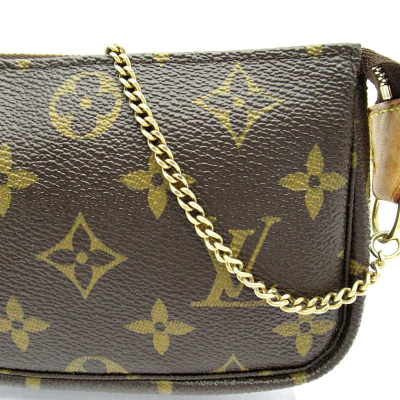 USED品。モノグラム・キャンバスで仕立てた「ミニ・ポシェット・アクセソワール」。必需品をスタイリッシュに持ち運ぶのに最適です。収納力に優れたファスナー付きのコンパートメントはクラッチバッグとしても、付属のチェーンやフックでバッグに取付けてもお使いいただけます。ラウンド型のシェイプとしなやかなモノグラム・キャンバスが魅力の、使い勝手の良いポーチです。