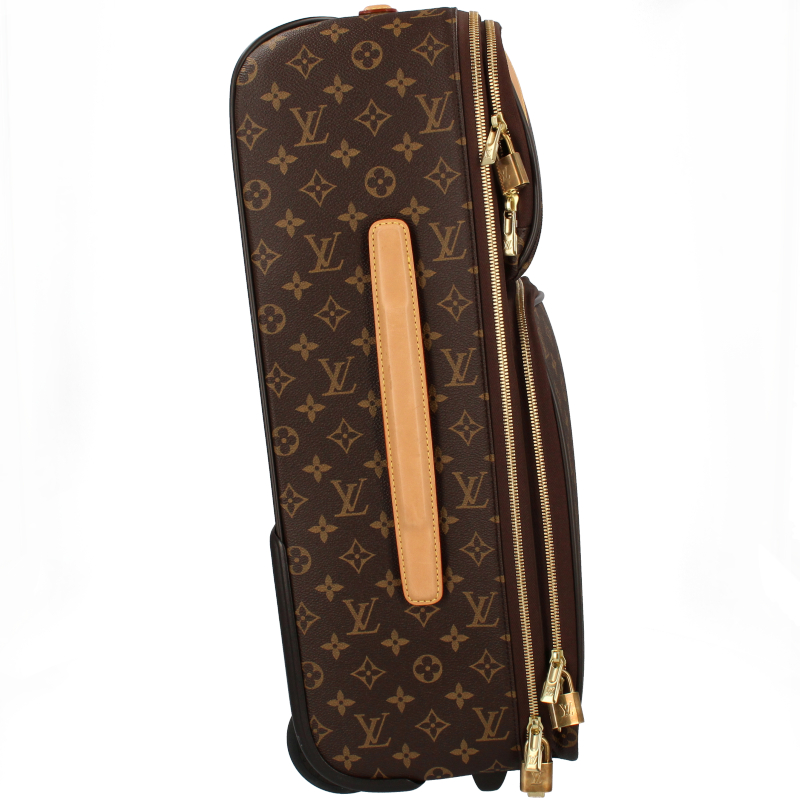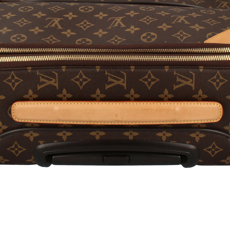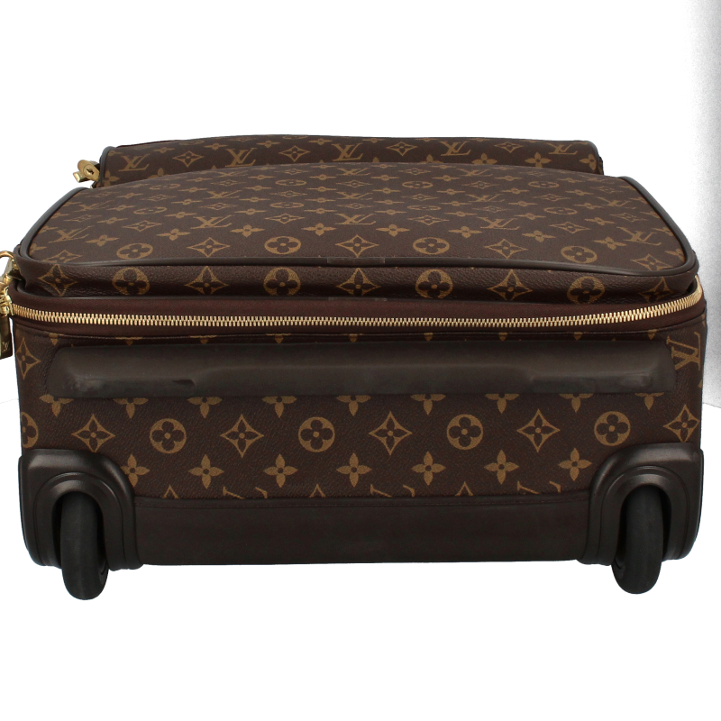 少々使用感有。ヌメ革に色焼け、シミ、擦れ、擦り傷、黒ずみがあります。底部、キャスター付近に擦れ、擦り傷、汚れがあります。