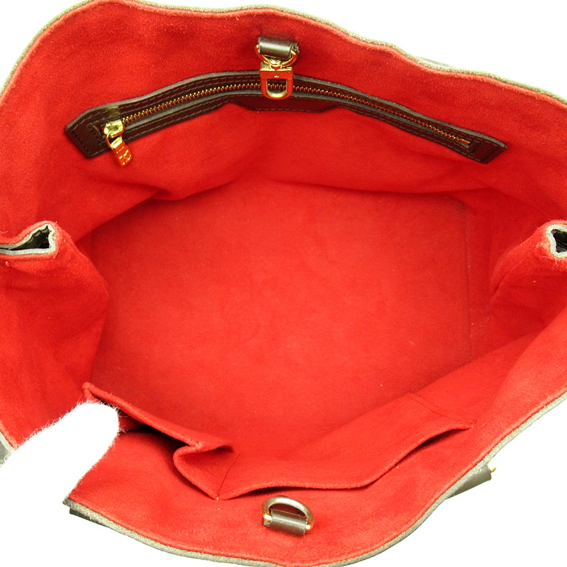 多少使用感有。キャンバス全体に変色があります。ハンドルに擦れやシワがあります。レザー部分に擦り傷があります。金具に擦り傷があります。