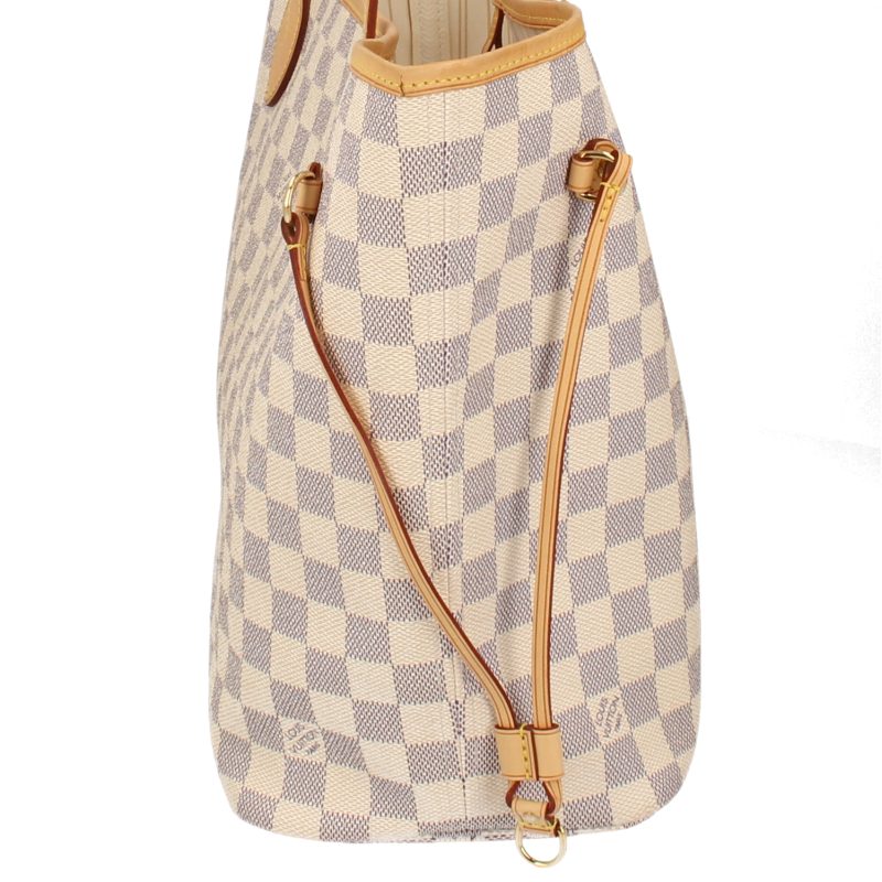 USED品。廃盤品。フレッシュなダミエ・アズール キャンバスにヌメ革のトリミングをあしらった大容量ながら取り回しやすいアイテムは、サイドレースを締めれば洗練された印象を放ち、緩めればカジュアルな表情を見せてくれます。