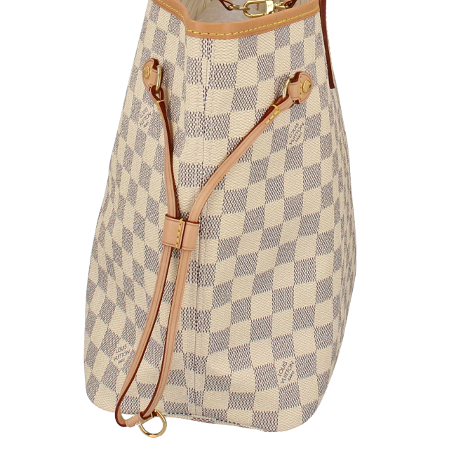 USED品。フレッシュなダミエ・アズール キャンバスにヌメ革のトリミングをあしらった大容量ながら取り回しやすいアイテムは、サイドレースを締めれば洗練された印象を放ち、緩めればカジュアルな表情を見せてくれます。肩や腕にも掛けやすいスリムなレザーハンドルと、カラフルなテキスタイルのライニングも魅力です。取外し可能なポーチは、クラッチやバッグのポケットとしてお使いいただけます。