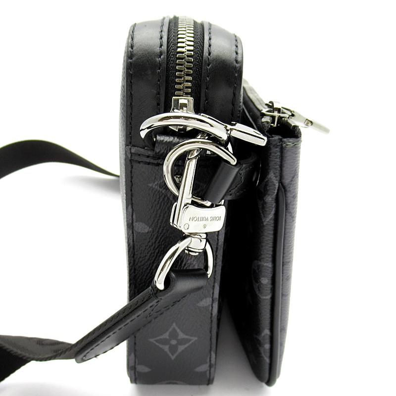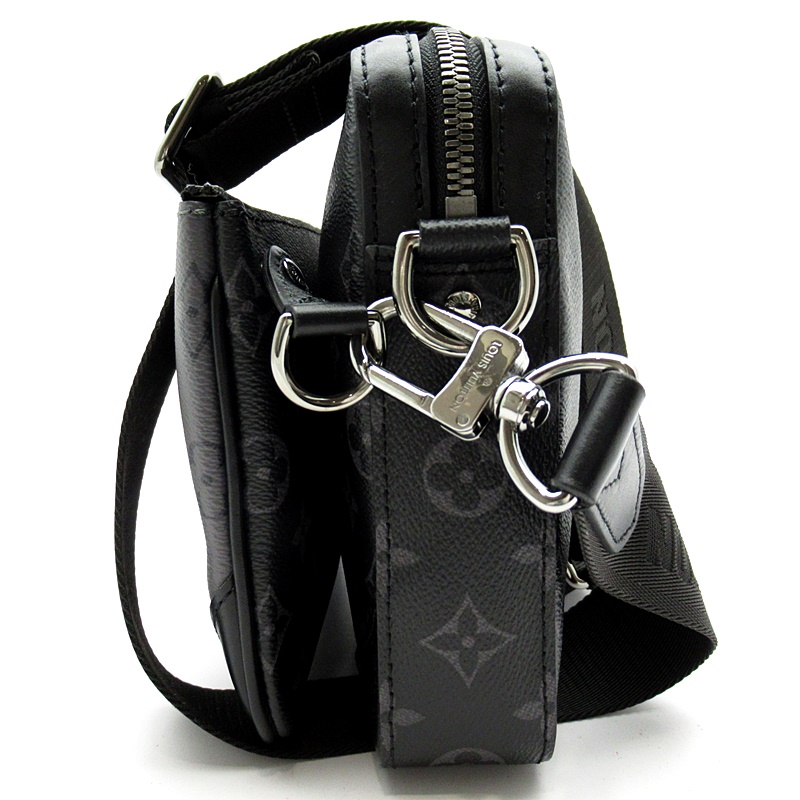 USED品。モノグラム・エクリプス キャンバスと、そのカラーを反転させたモノグラム・エクリプス リバース キャンバスを使用した「トリオ・メッセンジャー」。トーン・オン・トーンのグレーの色合いであしらったアイコニックなモチーフが、機能的なハイブリッドデザインを際立たせます。