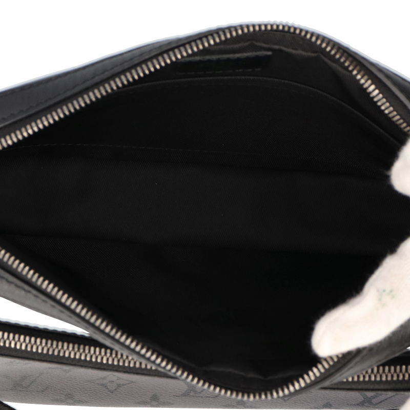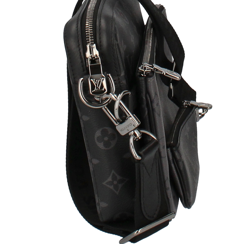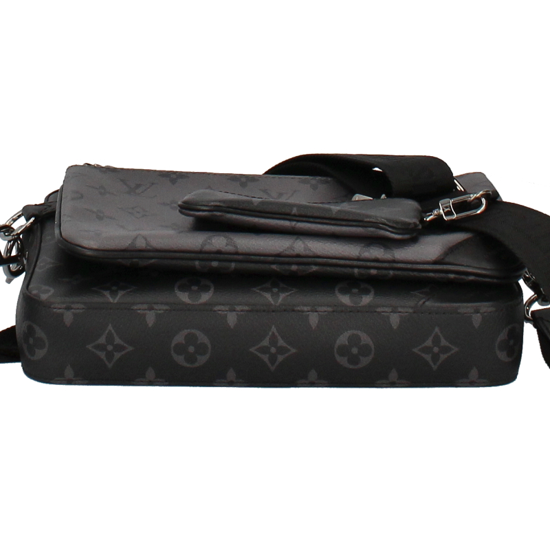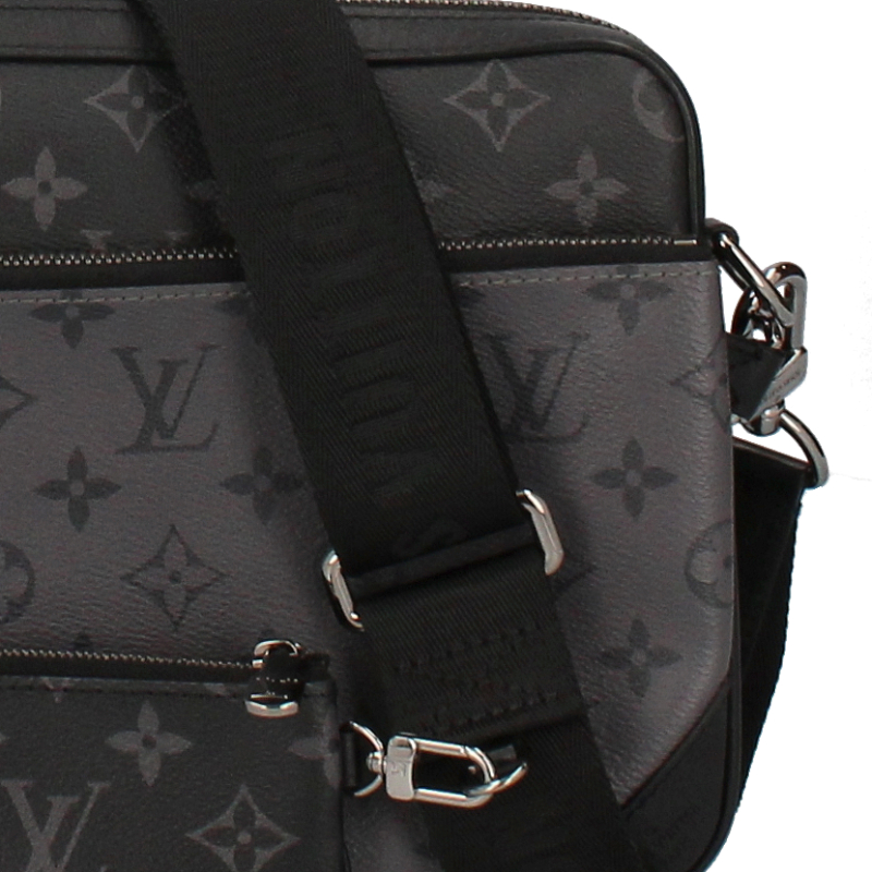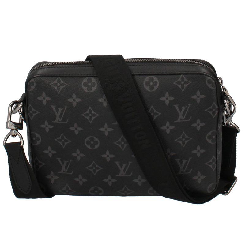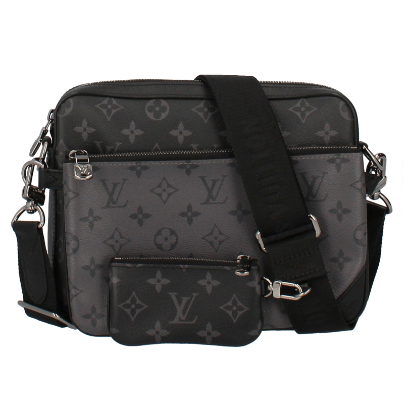 USED品。モノグラム・エクリプス キャンバスと、そのカラーを反転させたモノグラム・エクリプス リバース キャンバスを使用した「トリオ・メッセンジャー」。トーン・オン・トーンのグレーの色合いであしらったアイコニックなモチーフが、機能的なハイブリッドデザインを際立たせます。