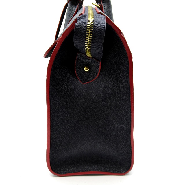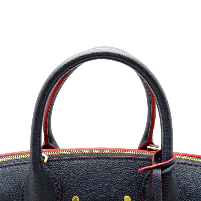 USED品。廃盤品。大人っぽい雰囲気と品の良さで人気があります。ブルーにレッドのラインが映える上品でモダンな印象のバッグです。