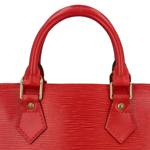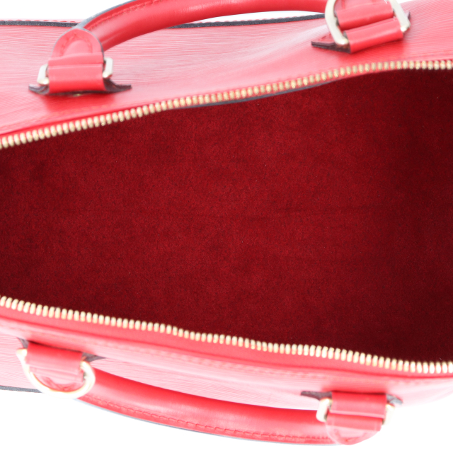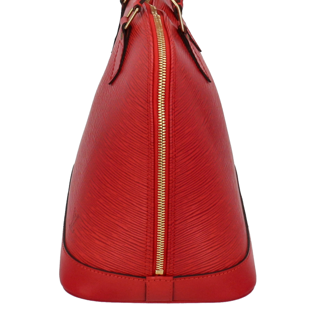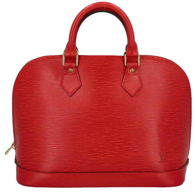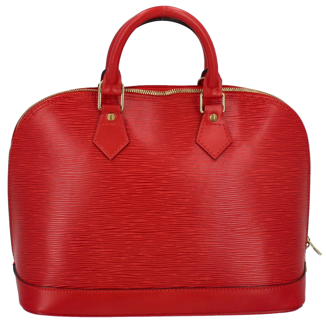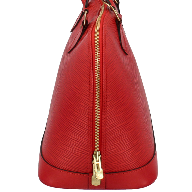 USED品。廃盤品。丸みを帯びたフォルムが上品な華やかなレッドのアルマです。マチが大きめの長方形になっており、長財布や化粧ポーチ、携帯、手帳などが問題なく入る収納力を誇ります。
