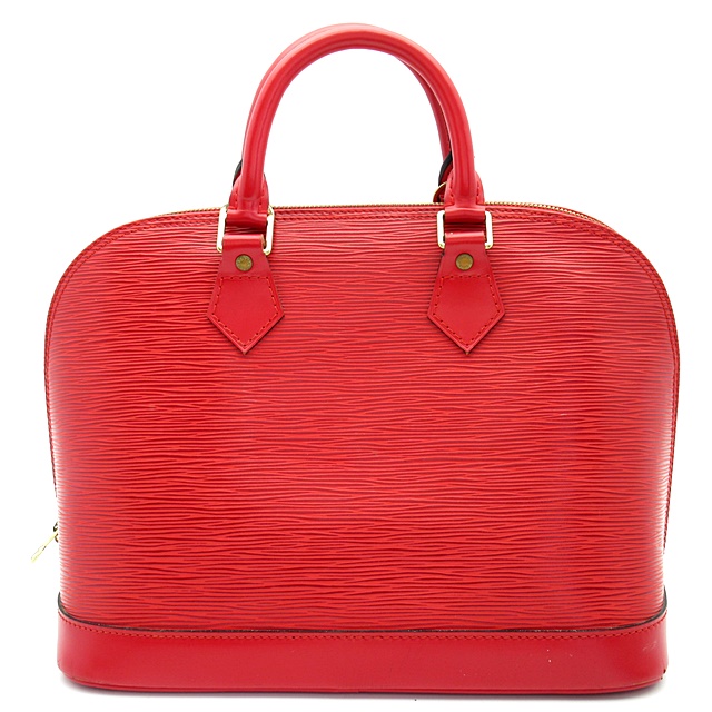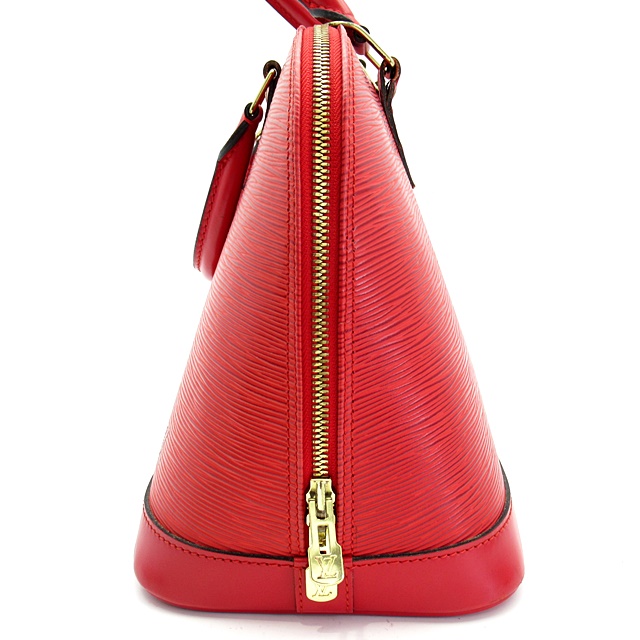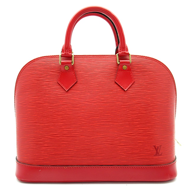 USED品。廃盤品。丸みを帯びたフォルムが上品な華やかなレッドのアルマです。マチが大きめの長方形になっており、長財布や化粧ポーチ、携帯、手帳などが問題なく入る収納力を誇ります。