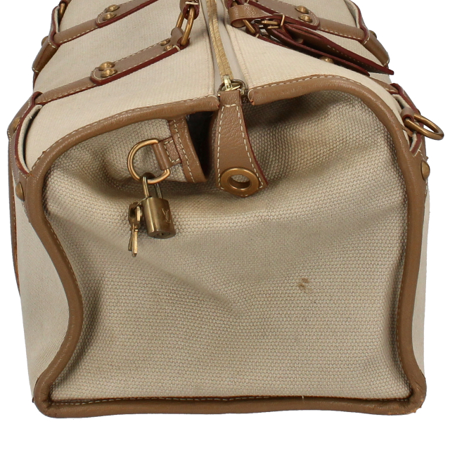 多少使用感有。角スレと角の剥がれがあります。革に擦れ、黒ずみ、汚れがあります。キャンバスに色褪せ、汚れがあります。内部に汚れがあります。金具に傷、剥がれがあります。