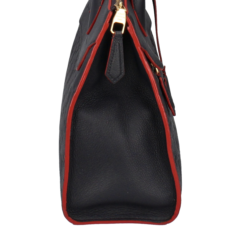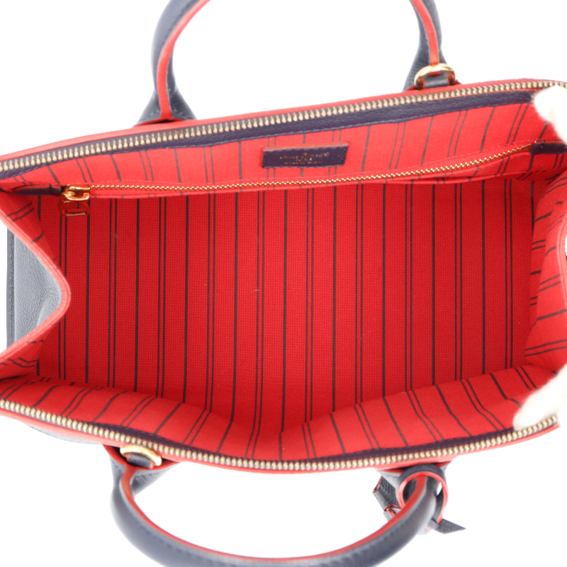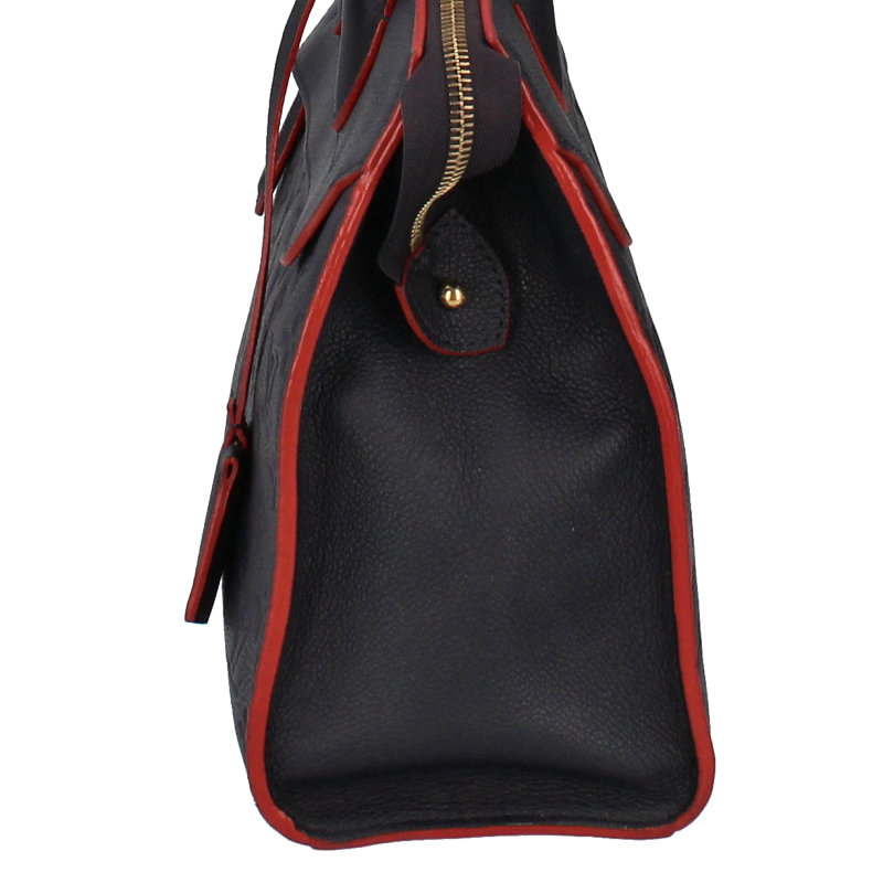 USED品。廃盤品。大人っぽい雰囲気と品の良さで人気があります。ブルーにレッドのラインが映える上品でモダンな印象のバッグです。