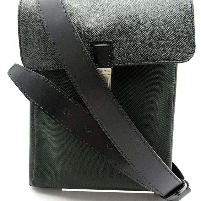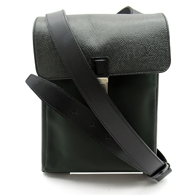 USED品。メンズラインのタイガのショルダーバッグ。ベルトは斜め掛けに出来る長さで、使い勝手も抜群です。背面ポケット、中も仕切りなど収納性に優れていて、末永くお使い頂けます。