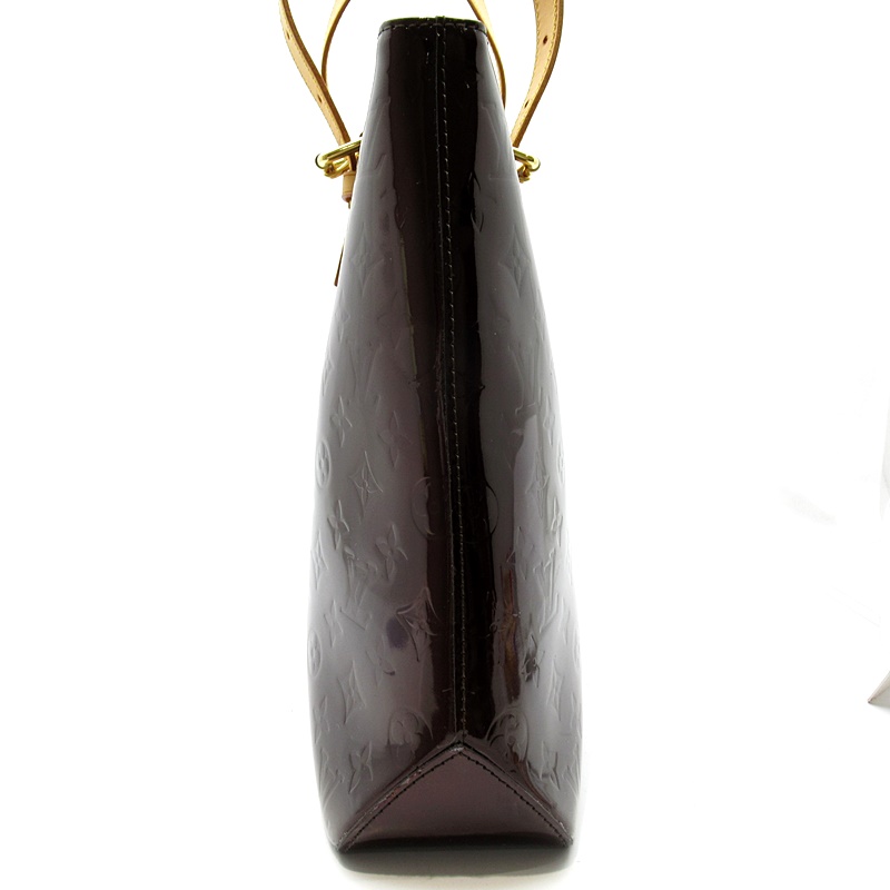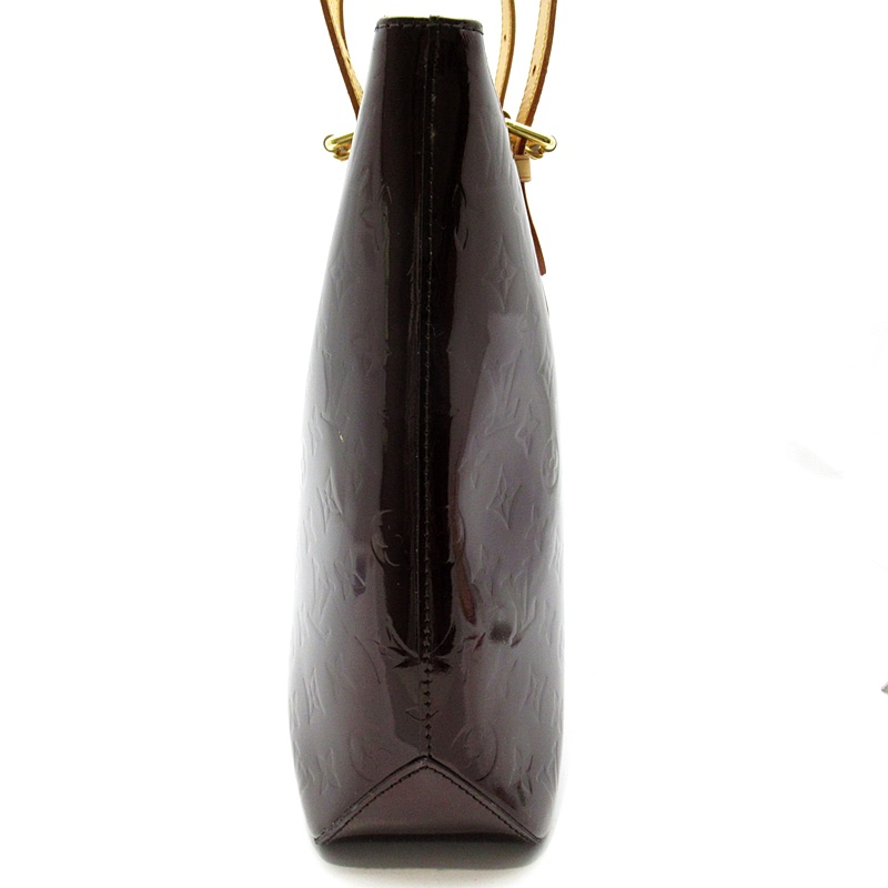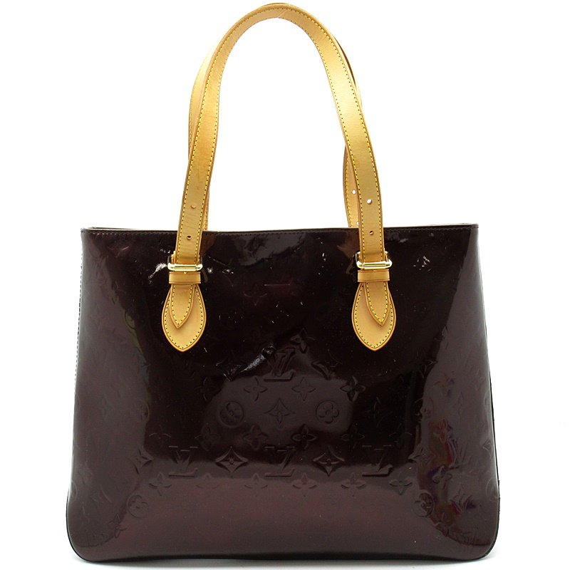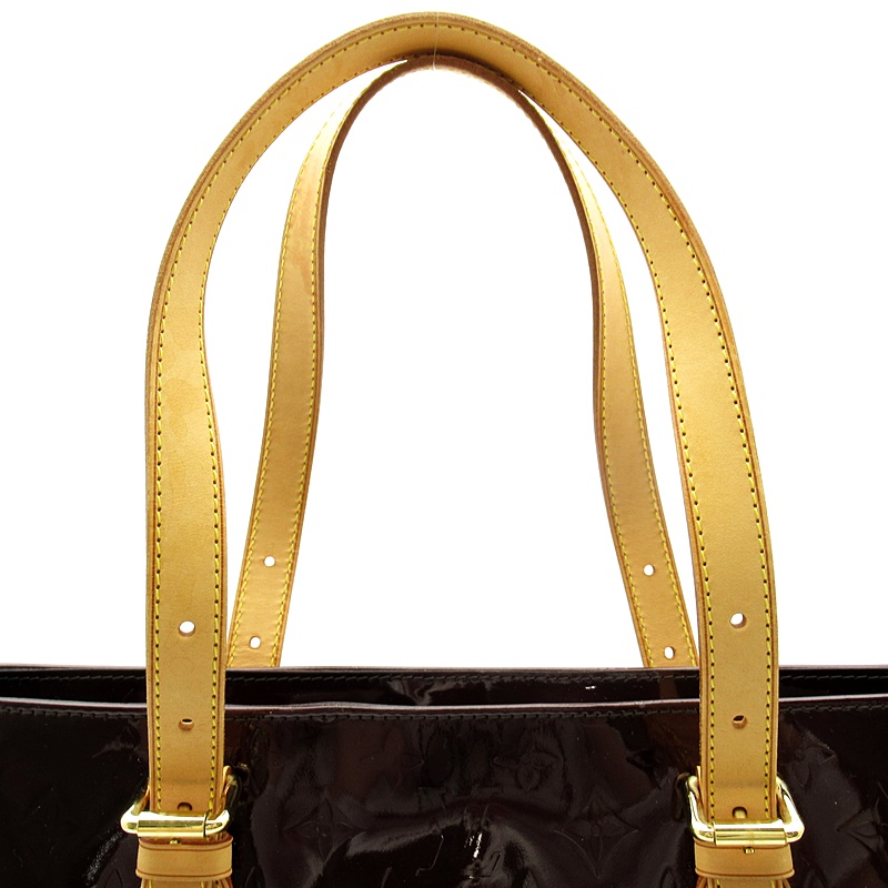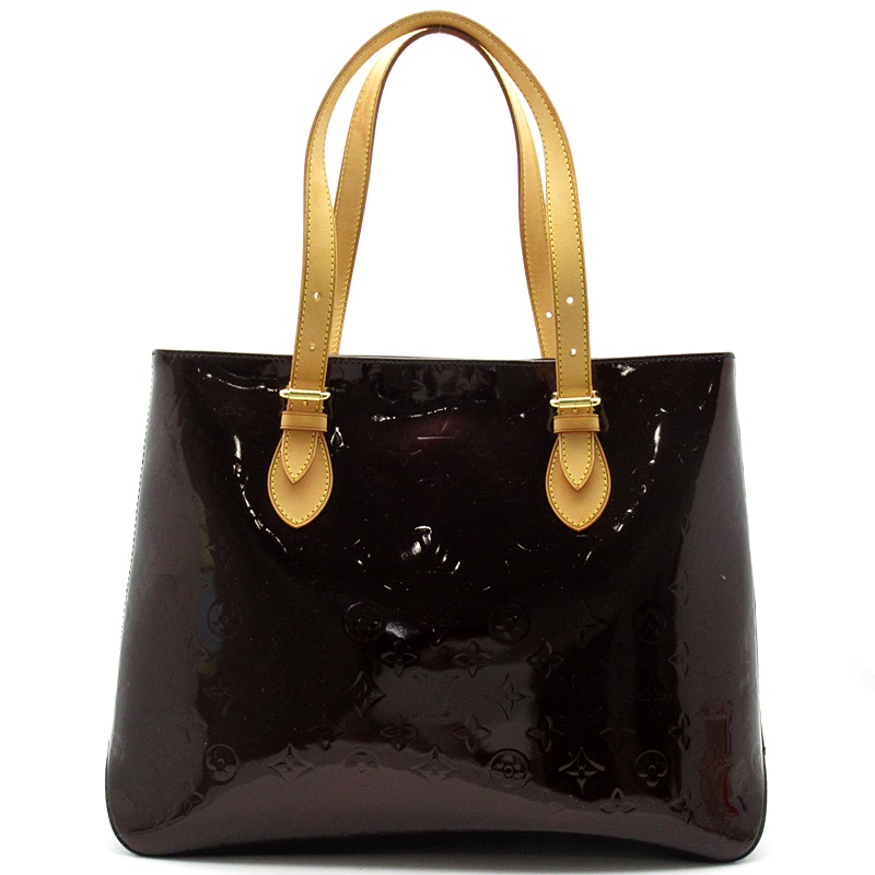 USED品。廃盤品。美しい光沢が魅力的なヴェルニラインの、長さが調節可能なストラップが機能的でフェミニンな印象のトートバッグ。
