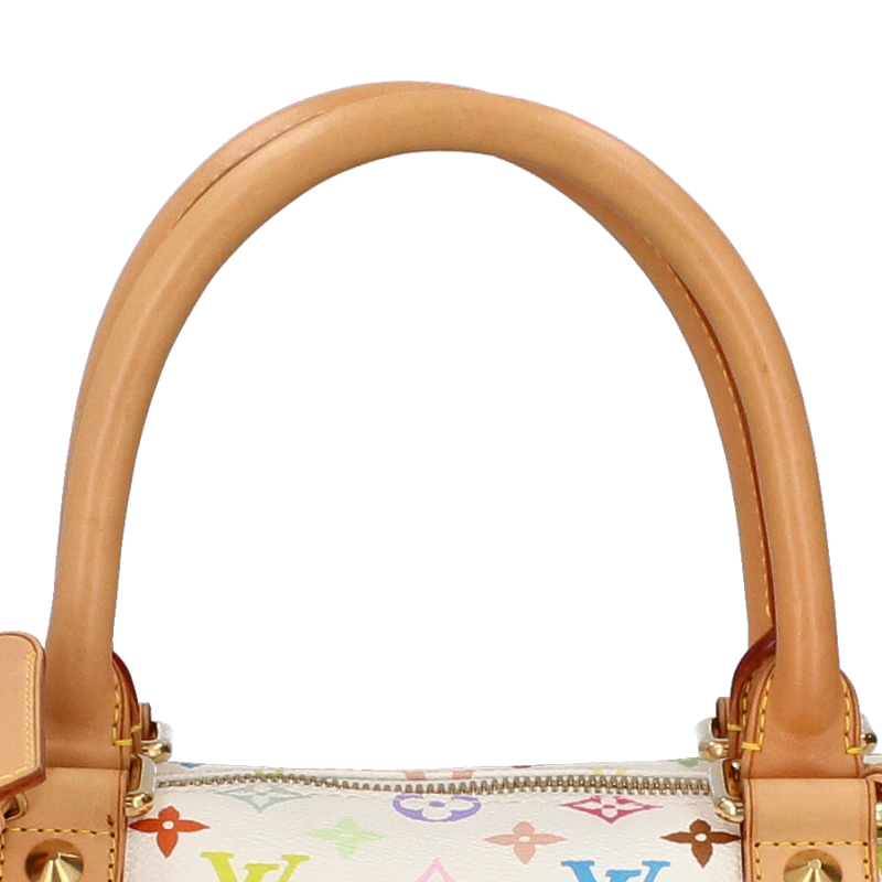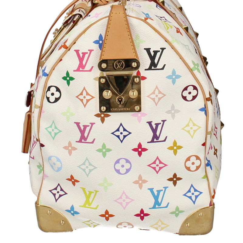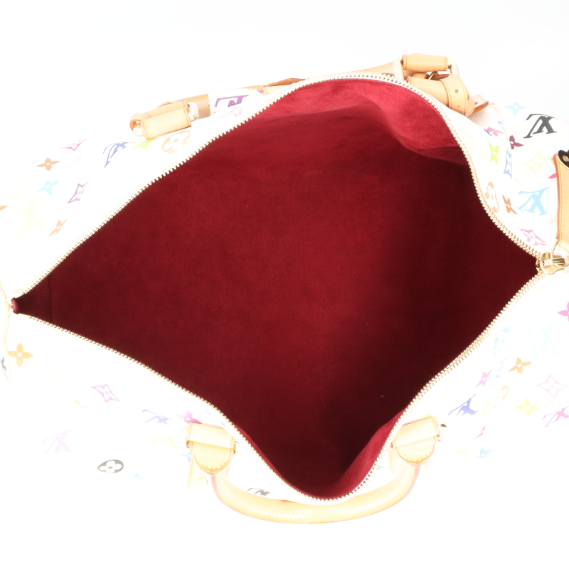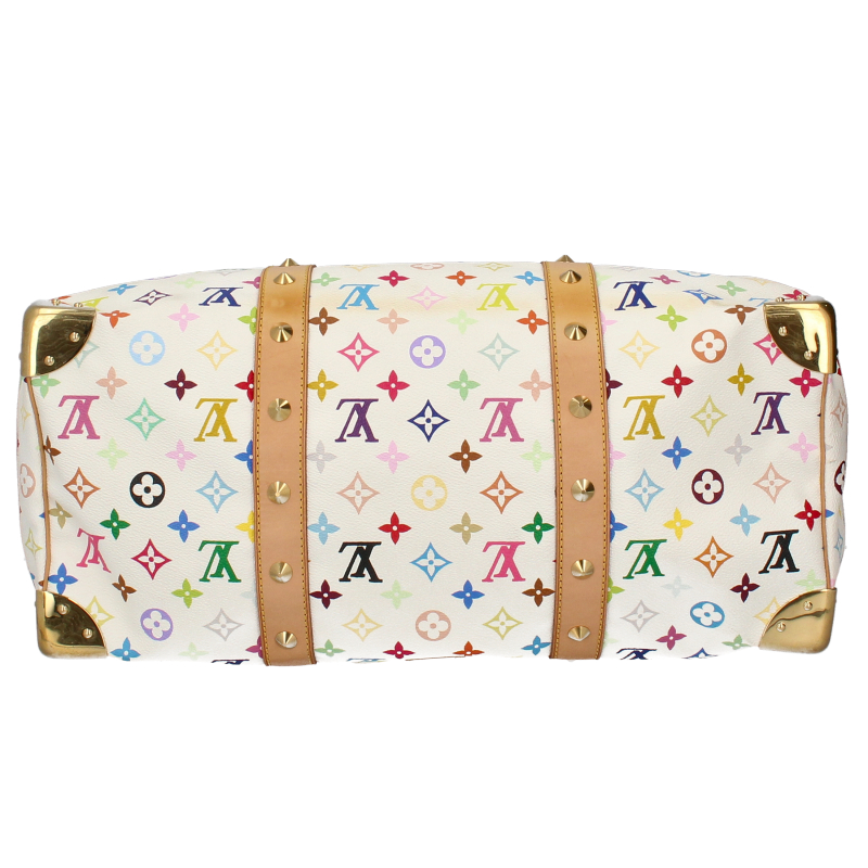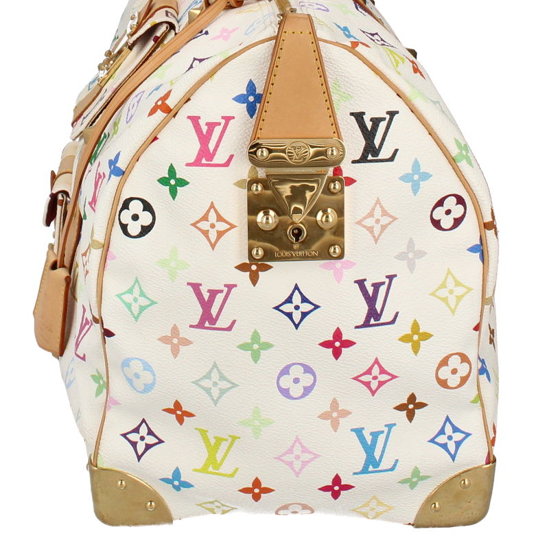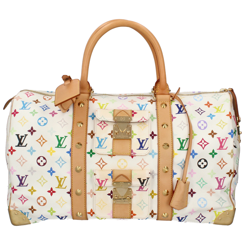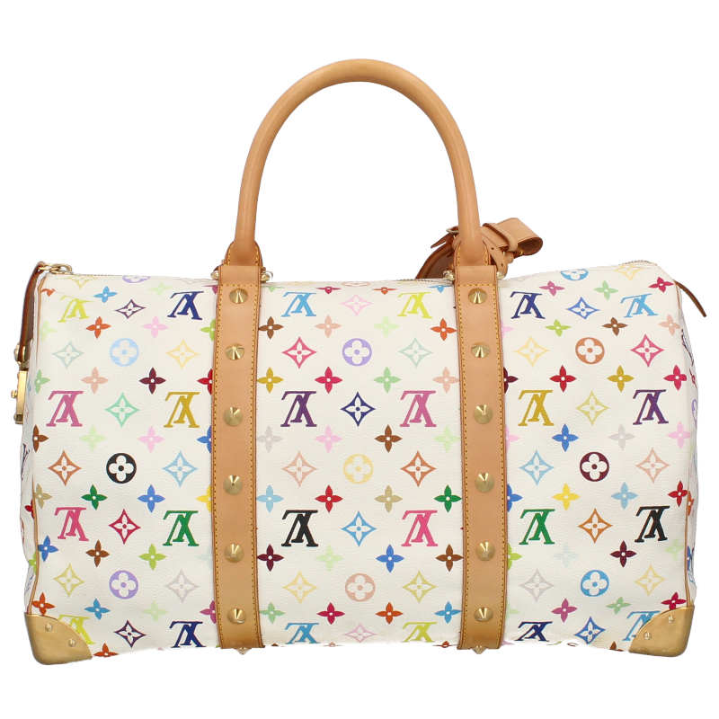 USED品。旅行シーンに最適な「キーポル45」ボストンバッグです。使い勝手の良いサイズ感と、フェミニンなシルエットが可愛らしいハンドバッグです。村上隆とのコラボレーションによって誕生したモノグラム マルチカラーデザインが、より華やかな印象を与えてくれます。