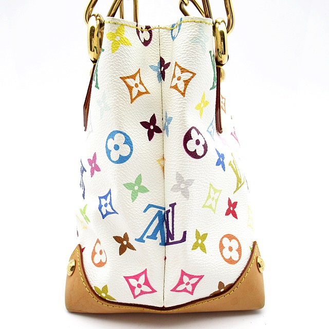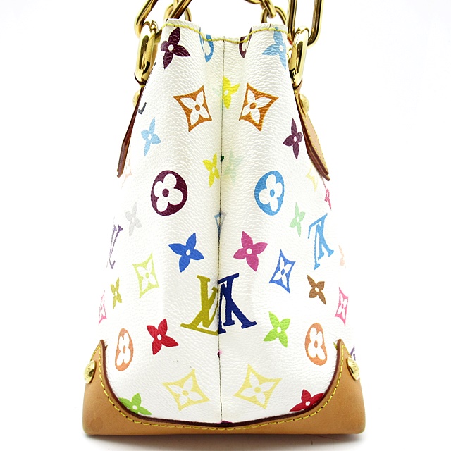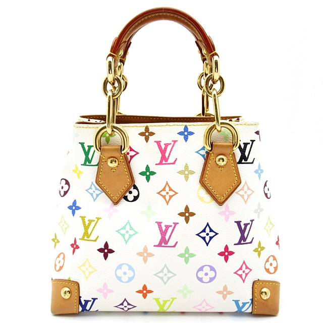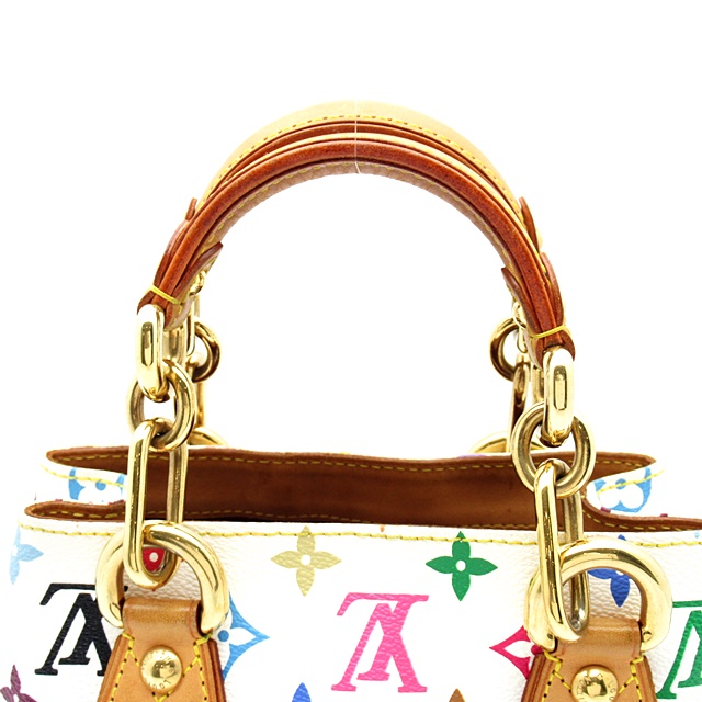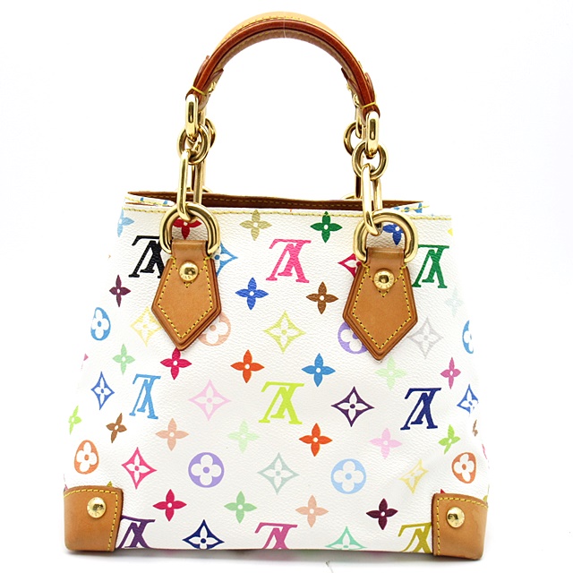 USED品。廃盤品。カラフルでポップな印象の可愛らしいバッグ。持ち手にゴールドのチェーンが印象的で小ぶりながらマチがあり、中のスペースが2つに分かれており、収納力がございます。