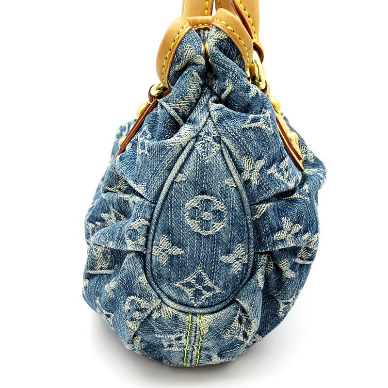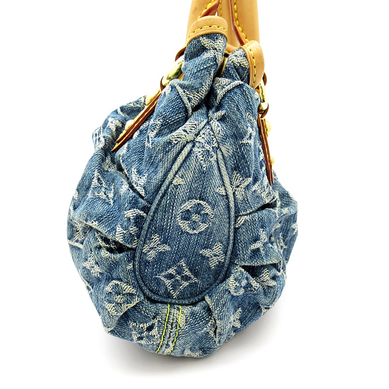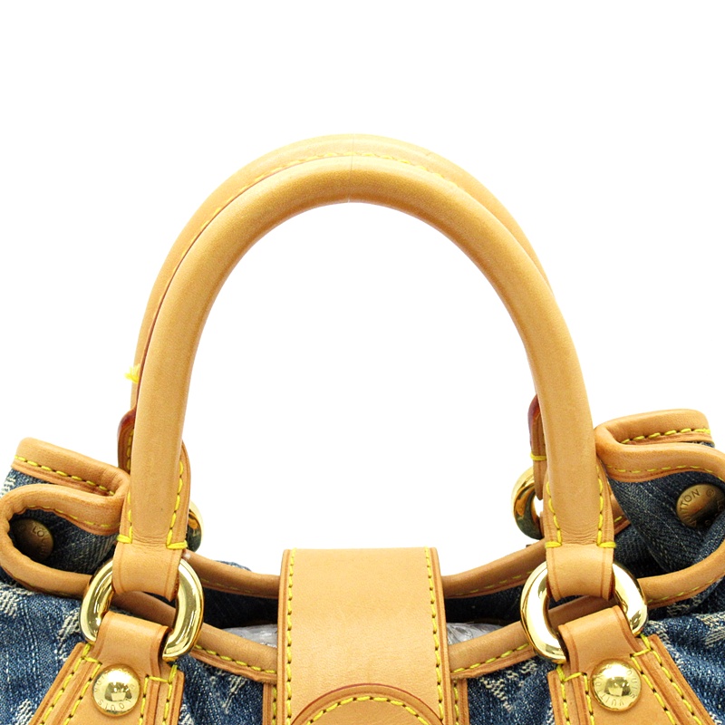 少々使用感有。ヌメ革に少々のシミと色焼けがあります。金具に小傷があります。デニムに色褪せが少々あります。