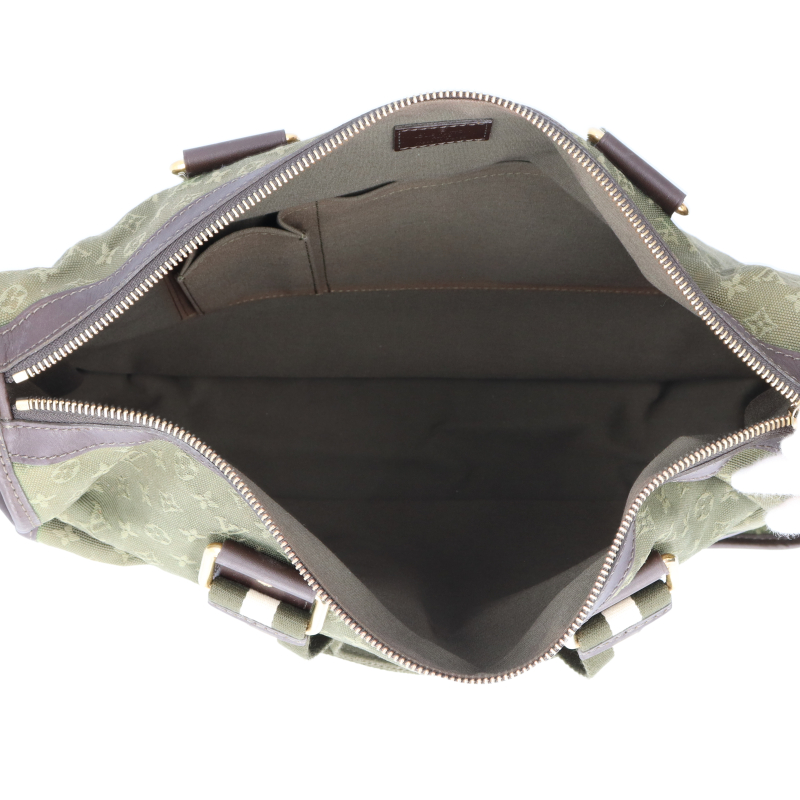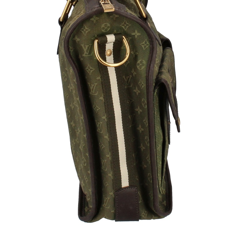 USED品。廃盤品。キャンバスにモノグラム模様が織り込まれたソフトな素材との組み合わせがナチュラルで女性らしいモノグラムミニ。軽く、使い易い素材でデイリーユースにおすすめのバッグです。