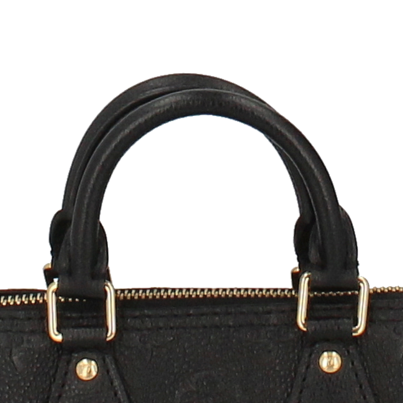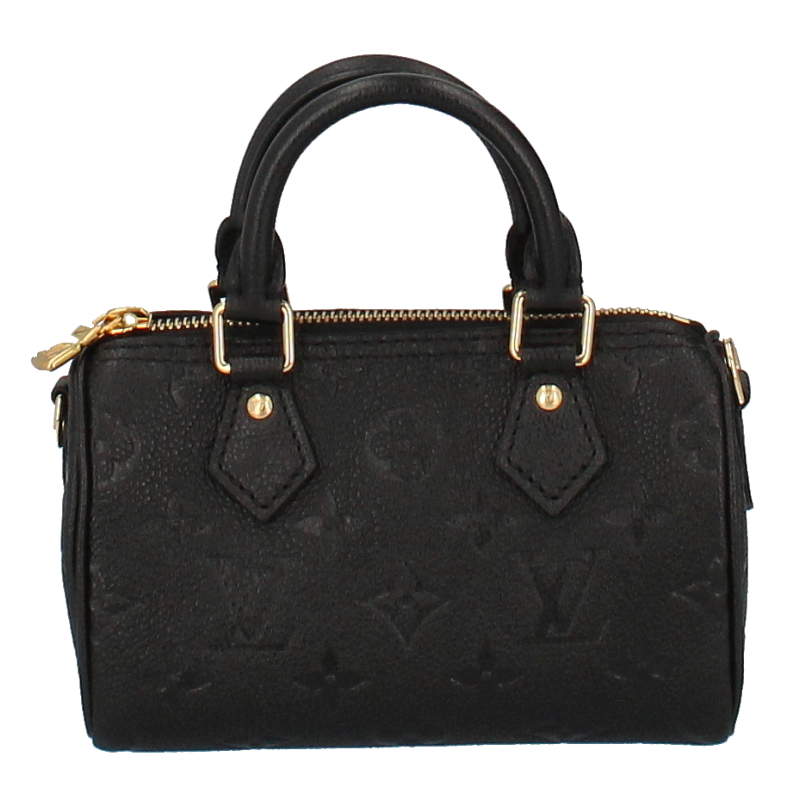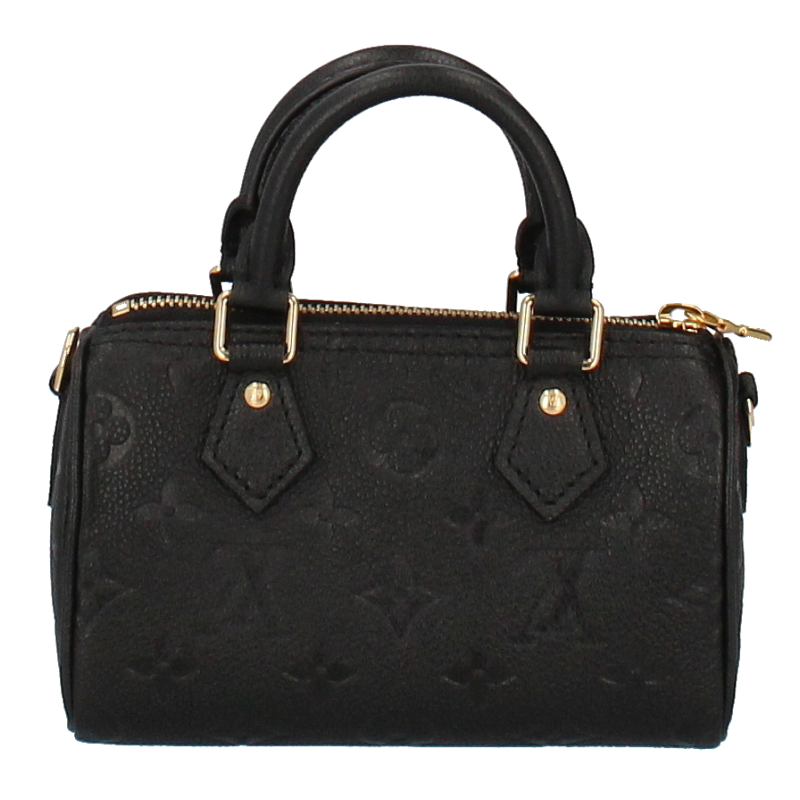 USED品。しなやかなグレイン(しぼ)が美しいモノグラム・アンプラント レザーを使用した「ナノ・スピーディ」。バイカラーの色使いが、エンボス加工で施したモノグラム・パターンを引き立てます。ルイ・ヴィトンのアイコニックなバッグ「スピーディ」を、ミニチュアサイズに再解釈しました。