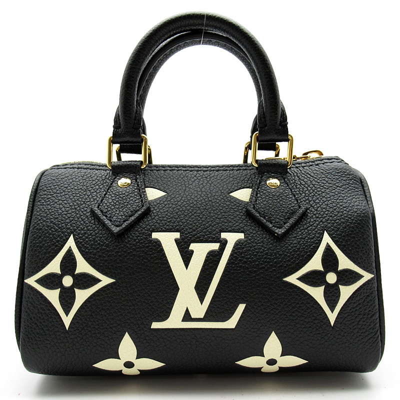 USED品。廃盤品。しなやかなグレイン(しぼ)が美しいモノグラム・アンプラント レザーを使用した「ナノ・スピーディ」。バイカラーの色使いが、エンボス加工で施したモノグラム・パターンを引き立てます。ルイ・ヴィトンのアイコニックなバッグ「スピーディ」を、ミニチュアサイズに再解釈しました。