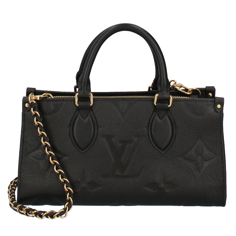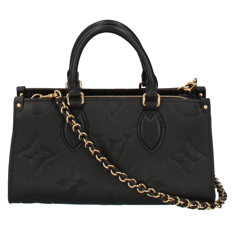 USED品。「オンザゴー」を均整の取れた美しい横長のシルエットで再解釈した「オンザゴー EW」。トーナルなモノグラム・ジャイアント パターンをエンボス加工で施したモノグラム・アンプラント レザーで仕立てました。日常の必需品を持ち運ぶのにぴったりな整理しやすい内装も魅力の、コンパクトなモデルです。