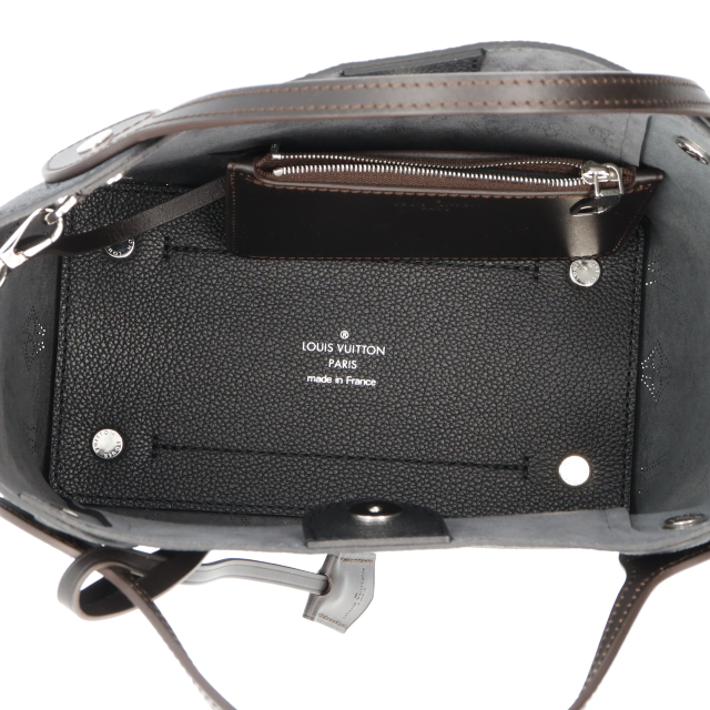 USED品。2つのバッグが1つになった「ヒナ PM」。サイド部分を留めるとトレンディなバケットスタイルに、広げると小さなカジュアルトートバッグになります。取外し可能な2つのトップハンドルやクロスボディ可能なストラップにより、持ち運びがしやすくなっています。
