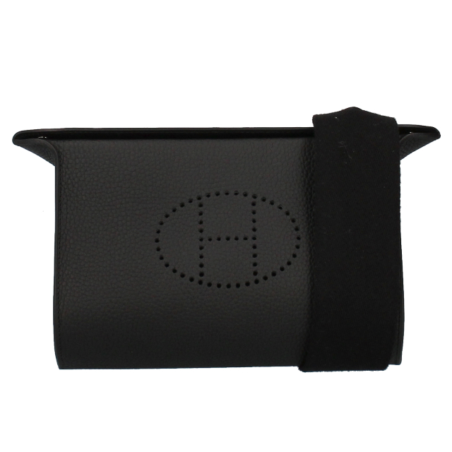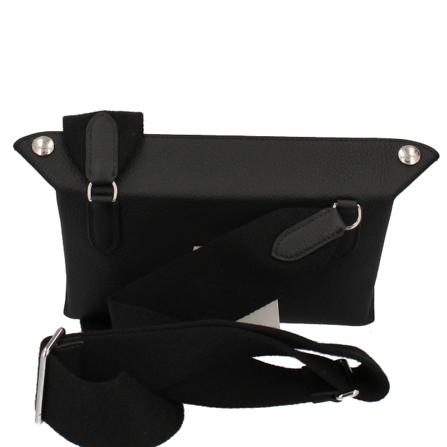 新品。B刻印(2023年製)。HERMESのホームコレクションで展開されている同名のレザートレイから着想を得て、クロスボディバッグに仕立てた話題沸騰中の新モデルです。レザートレイと同様にサドルネイルスナップで両端を留められる仕様になっている点と、同じくHERMESの名作バッグとして名高い「エヴリン」を彷彿とさせるHロゴのパンチングがアクセントになっている点が大きな特徴となっております。