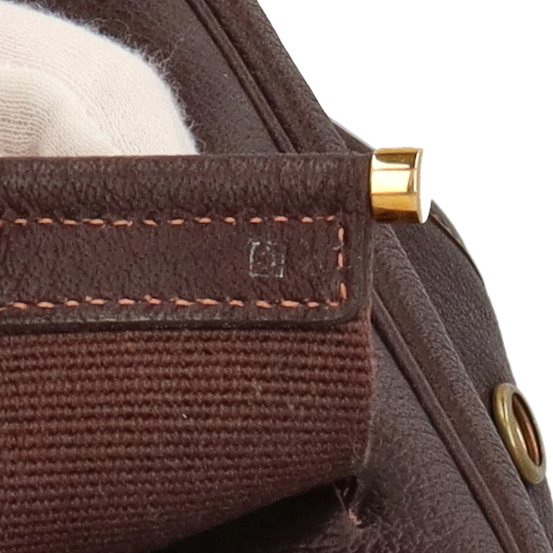 内部に毛羽立ちがあります。背面にうっすら汚れがついています。内部ファスナーは革タグが付いておりません。 |