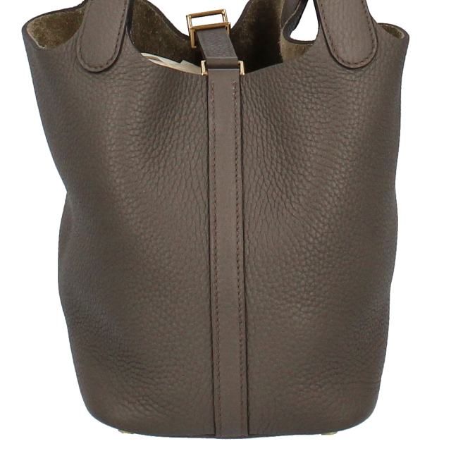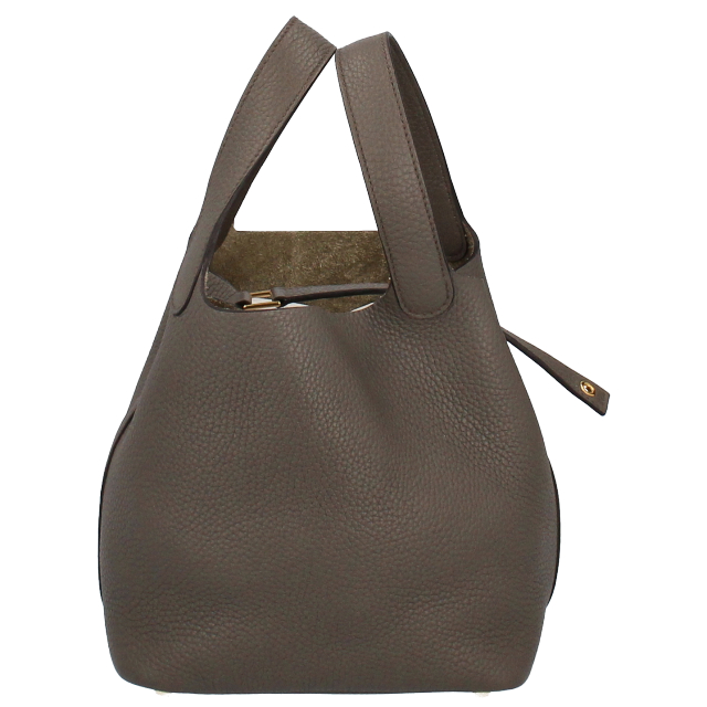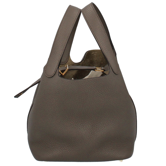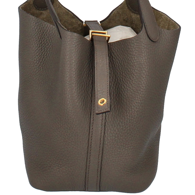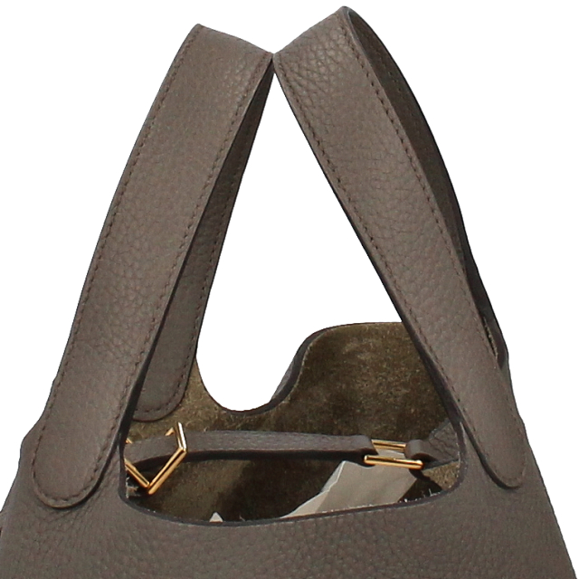 USED品。D刻印(2019年製)。ゴールド金具。幅広い年齢層に人気のピコタンロック。持ちやすい大きさに加え、見た目以上に荷物が入ります。