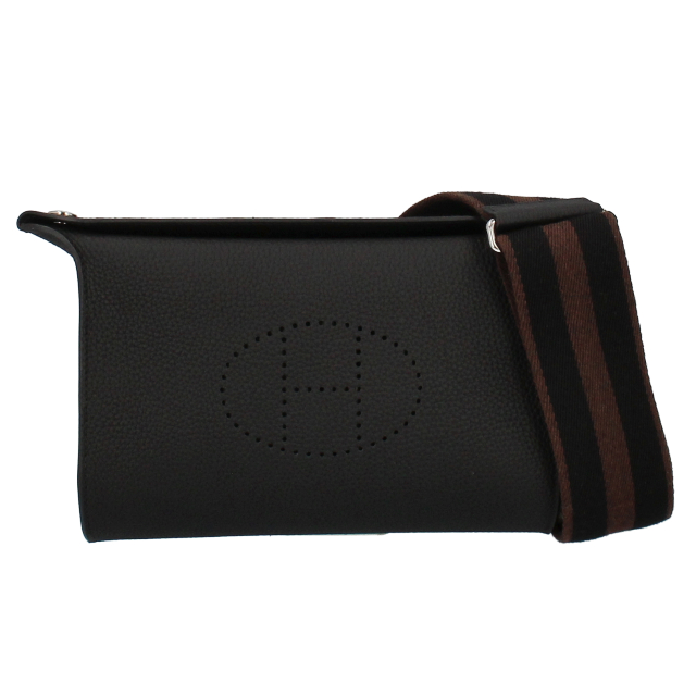 USED品。B刻印(2023年製)。HERMESのホームコレクションで展開されている同名のレザートレイから着想を得て、クロスボディバッグに仕立てた話題沸騰中の新モデルです。レザートレイと同様にサドルネイルスナップで両端を留められる仕様になっている点と、同じくHERMESの名作バッグとして名高い「エヴリン」を彷彿とさせるHロゴのパンチングがアクセントになっている点が大きな特徴となっております。