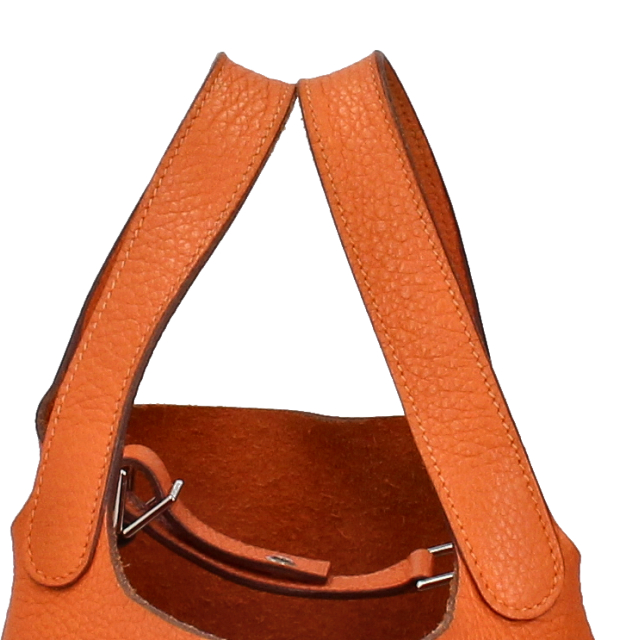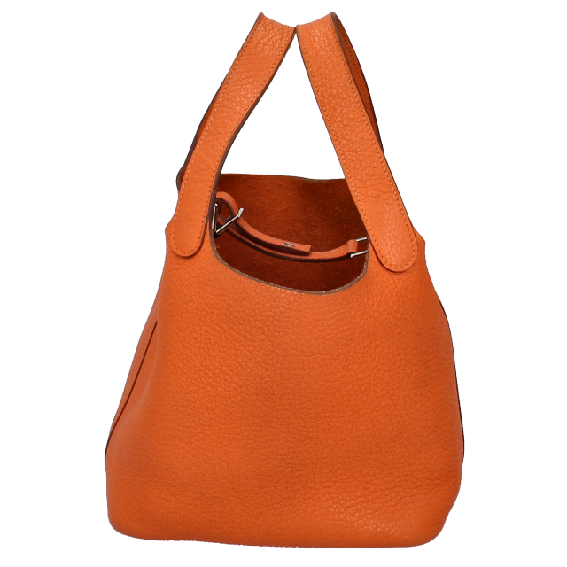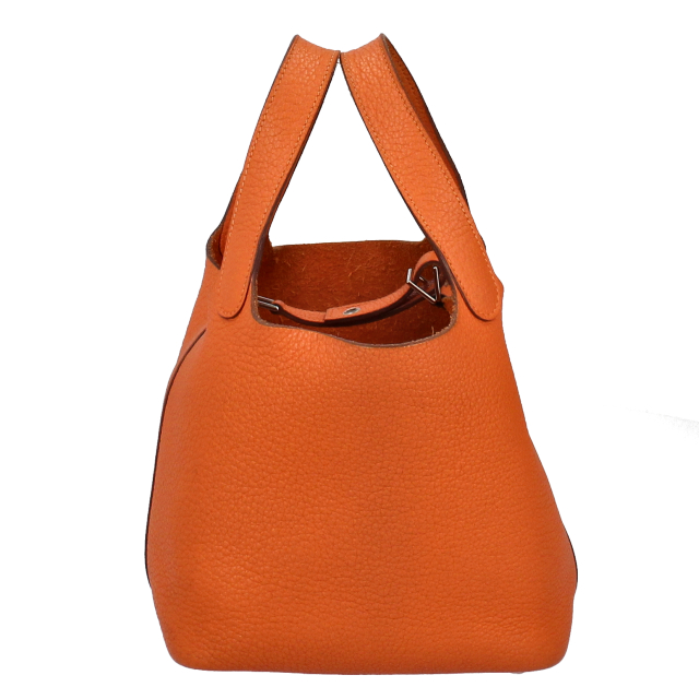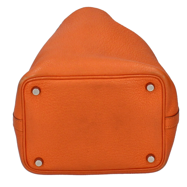 USED品。□M刻印(2009年製)。ゴールド金具。幅広い年齢層に人気のピコタンロック。持ちやすい大きさに加え、見た目以上に荷物が入ります。