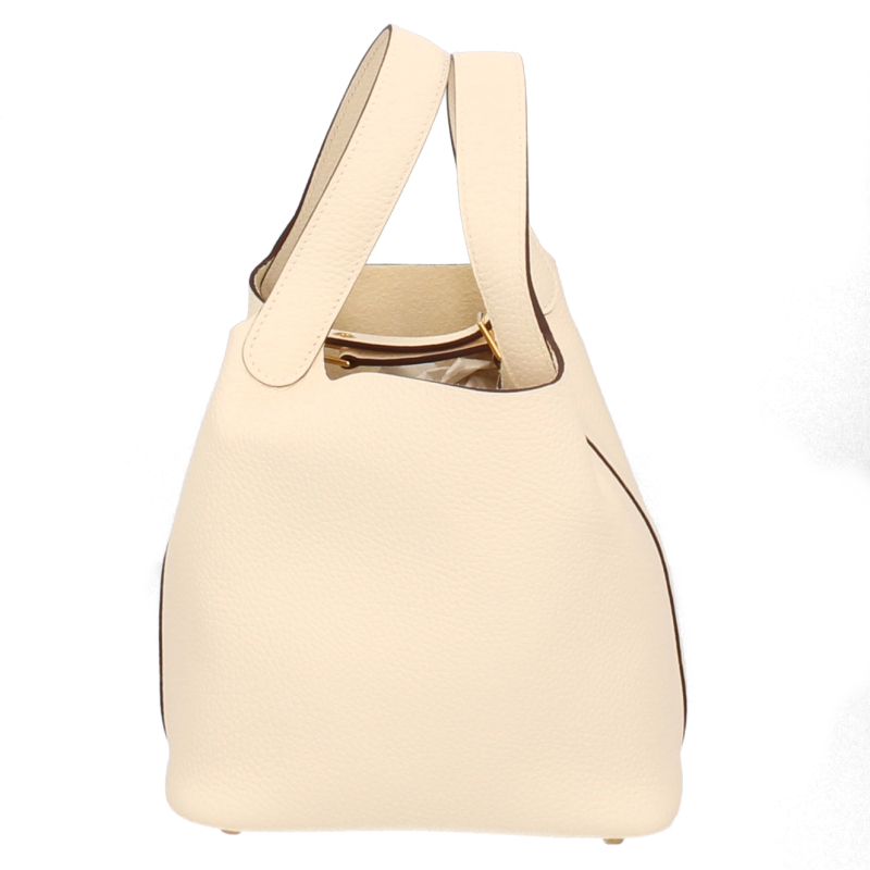 USED品。B刻印(2023年製)。ゴールド金具。幅広い年齢層に人気のピコタンロック。持ちやすい大きさに加え、見た目以上に荷物が入ります。