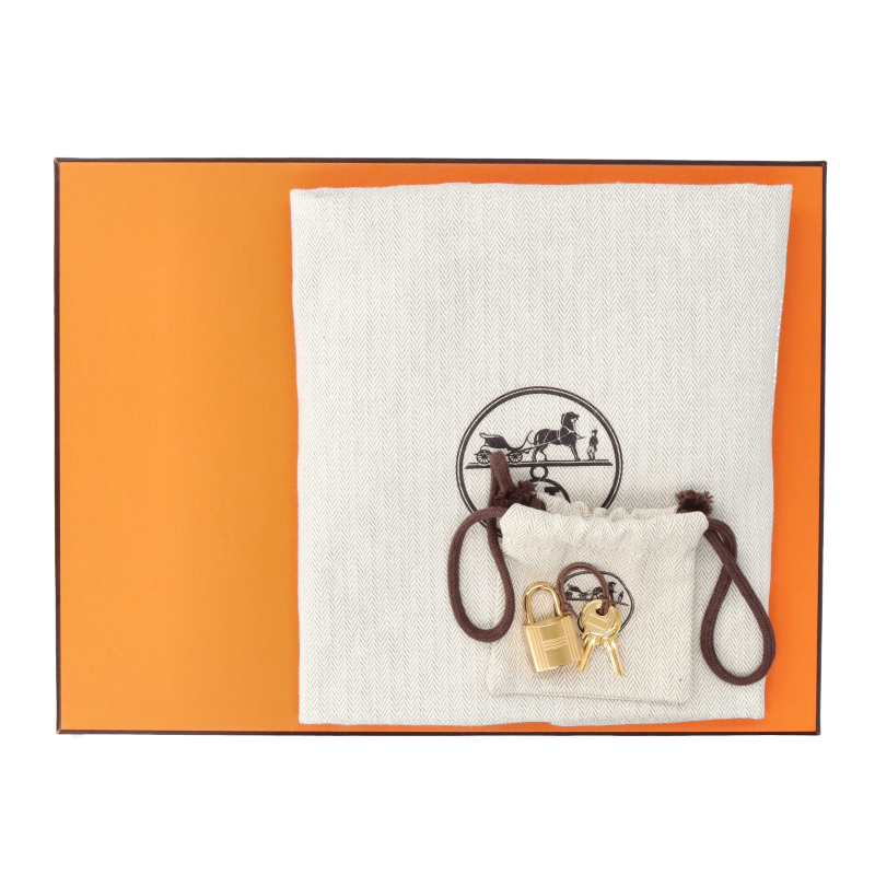新品。K刻印(2025年製)。ゴールド金具。カデナ、底鋲に保護シール付き。