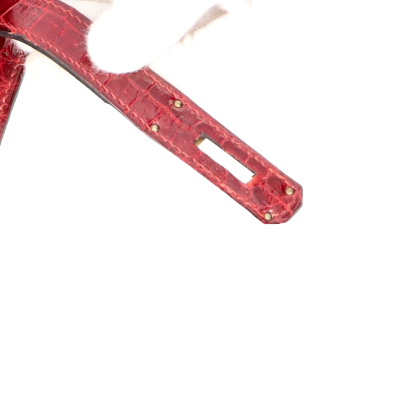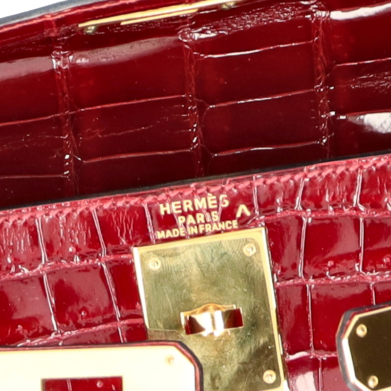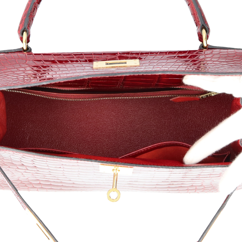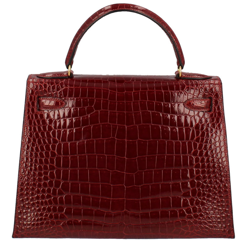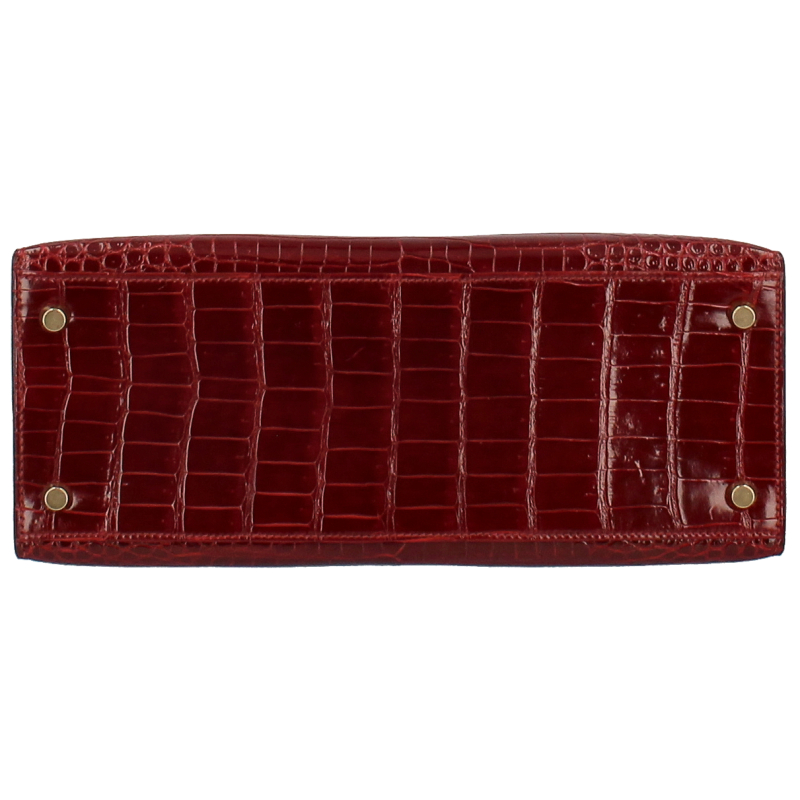 USED品。○Y刻印(1995年製)。ゴールド金具。4大エルメスの1つとして絶大な人気を誇るケリー。こちらは希少なクロコダイルポロサスで作られたものです。