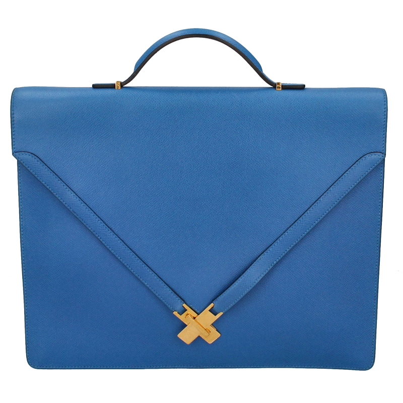 USED品。◯Y刻印(1995年製)。汚れや擦れに強く、耐久性に優れたクシュベル素材の鮮やかな発色が美しいブリーフケースです。軽量でA4サイズの書類が収納できます。男女問わずお使いいただけます。