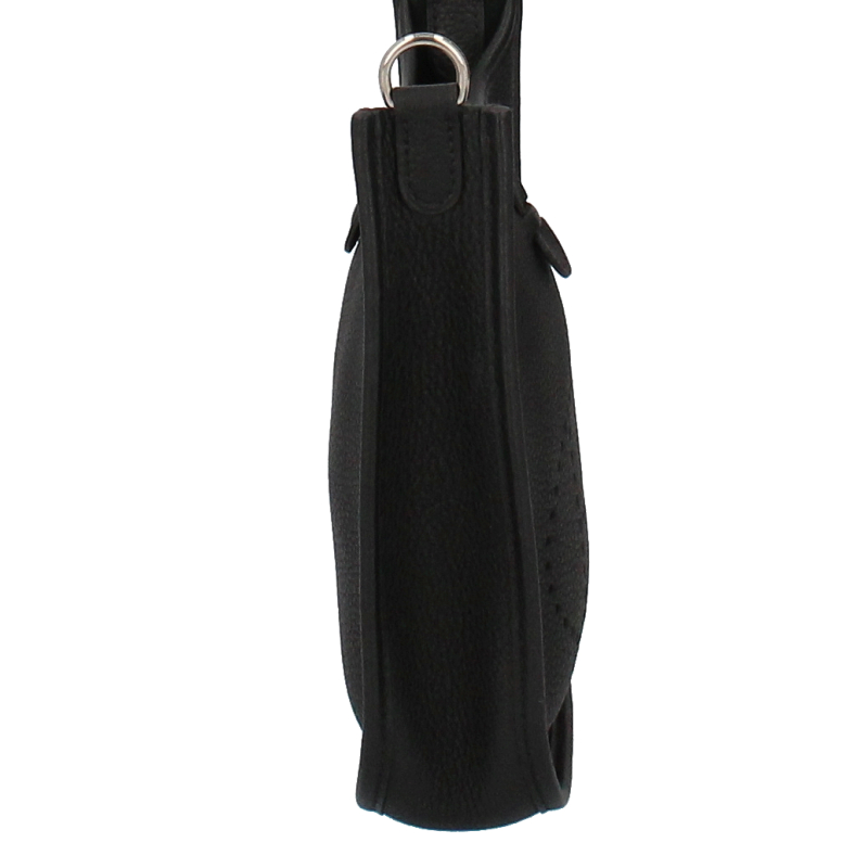 USED品。Y刻印(2020年製)。シルバー金具。小ぶりなTPMは携帯やお財布が入るサイズ感です。またショルダーストラップにはシックなブラックカラーとの相性抜群なカラーリングで織り込まれた「サングル アレグロ」が施されたストラップとなっています。