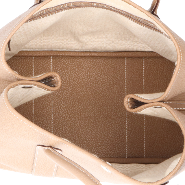USED品。A刻印(2017年製)。シルバー金具。デザインがシンプルな為、服装にとらわれず使える逸品です。大きく開く間口は荷物の出し入れがしやすく、使い勝手抜群です。