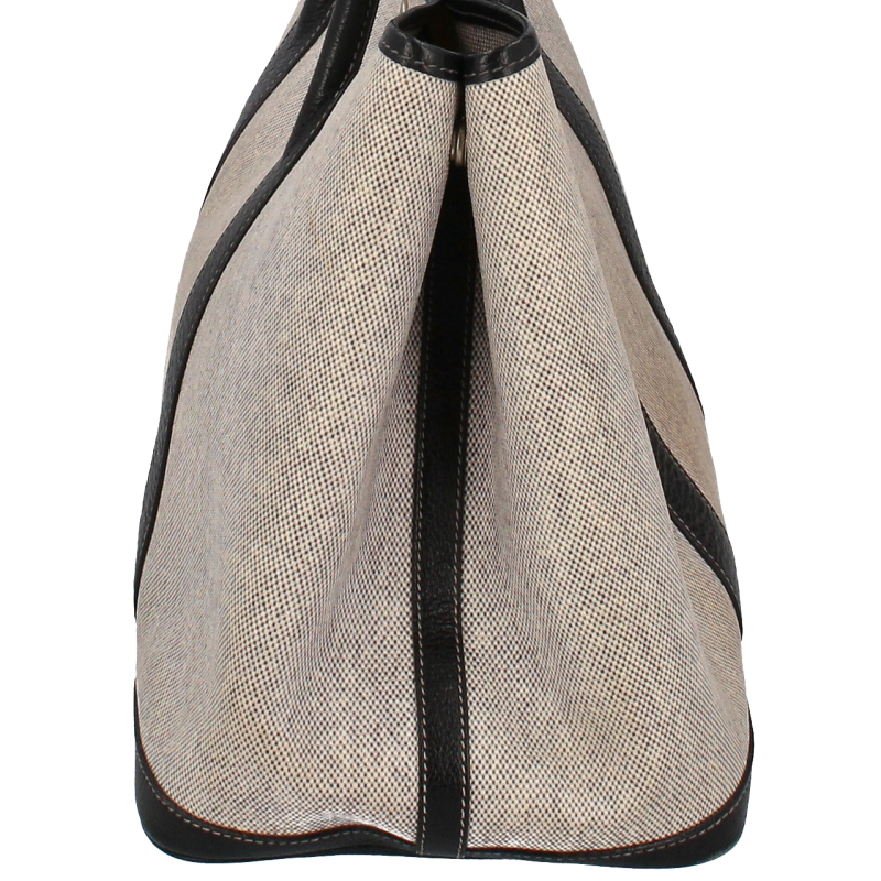 USED品。□F刻印(2002年製)。シルバー金具。デザインがシンプルな為、服装にとらわれず使える逸品です。大きく開く間口は荷物の出し入れがしやすく、使い勝手抜群です。