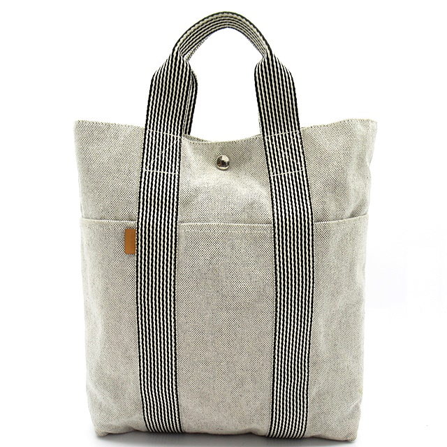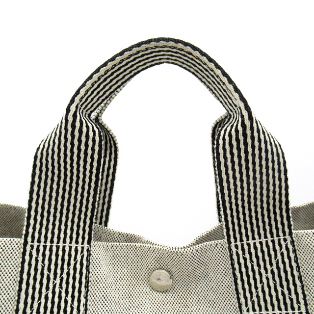 USED品。キャンバス地にコットン素材のハンドルやラインが爽やかなアクセント。使い勝手のいいサイズ感は毎日のお出掛けに重宝します。