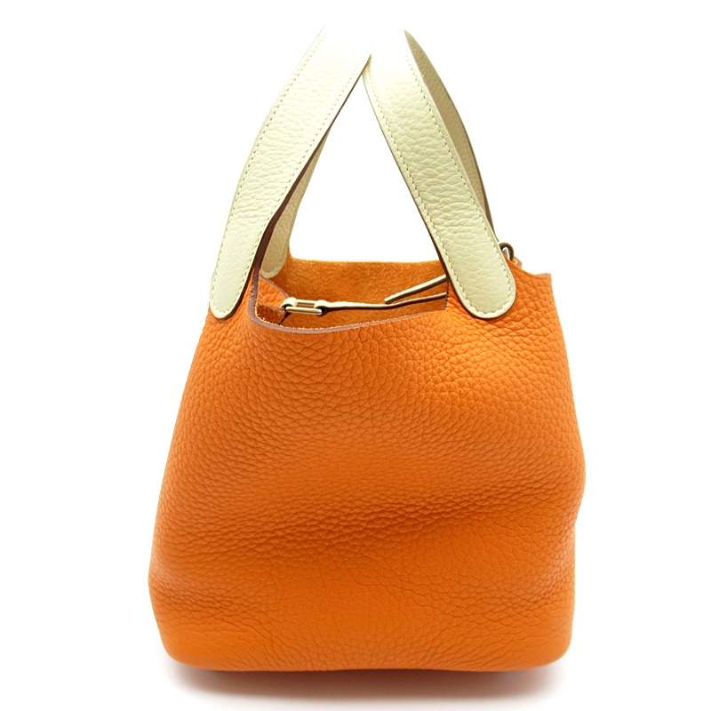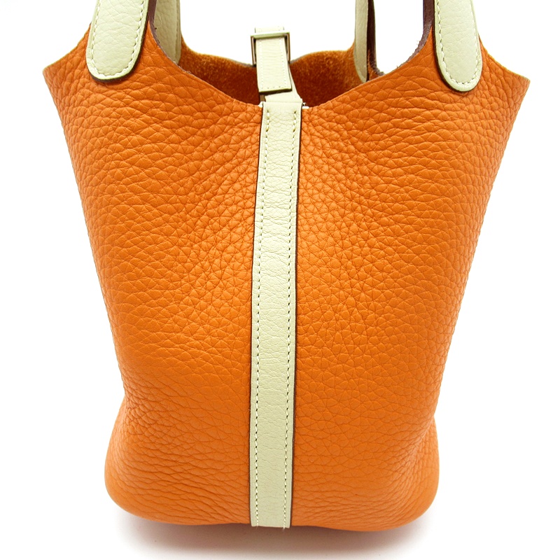 USED品。□M刻印(2009年製)。シルバー金具。幅広い年齢層に人気のピコタンPM。持ちやすい大きさに加え、見た目以上に荷物が入ります。