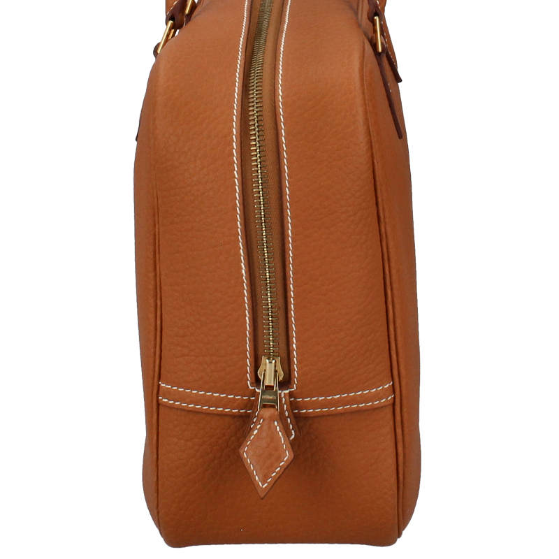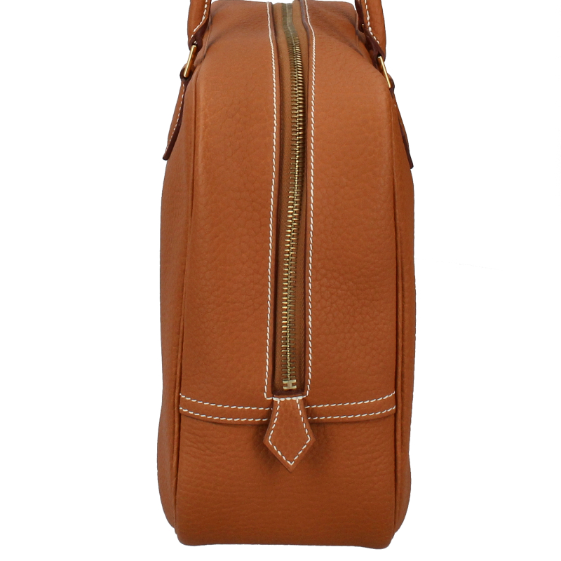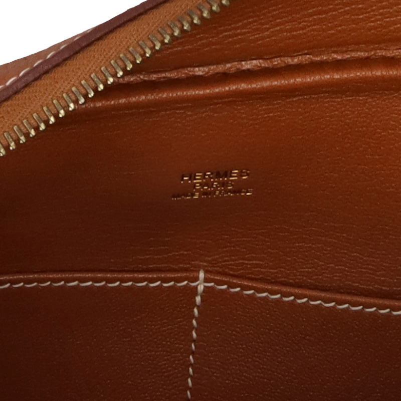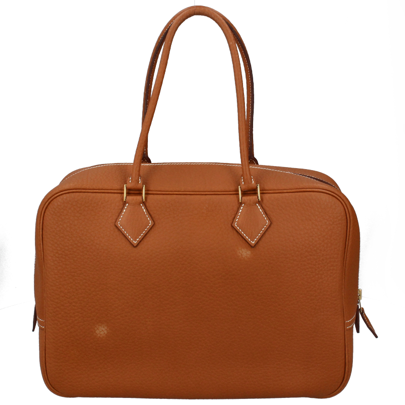 少々使用感有。表面に白い大きな汚れが2個所あります。ファスナー付近に黒い汚れがあります。□R刻印(2014年製)。ゴールド金具。