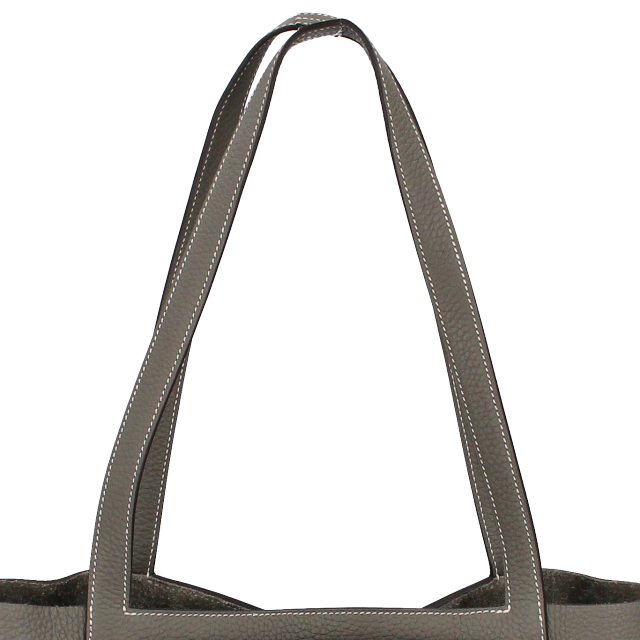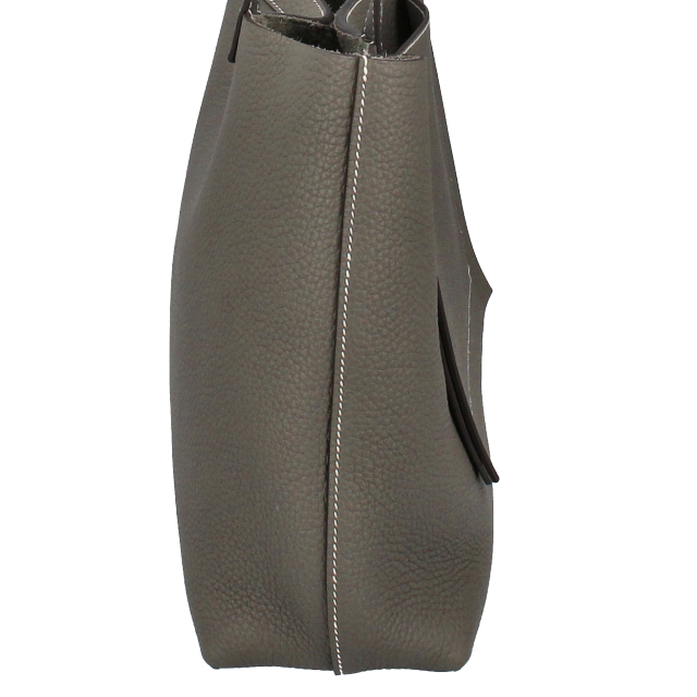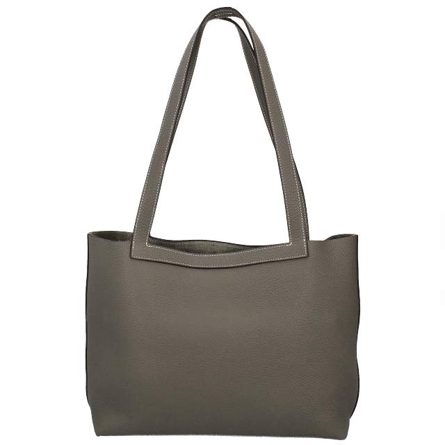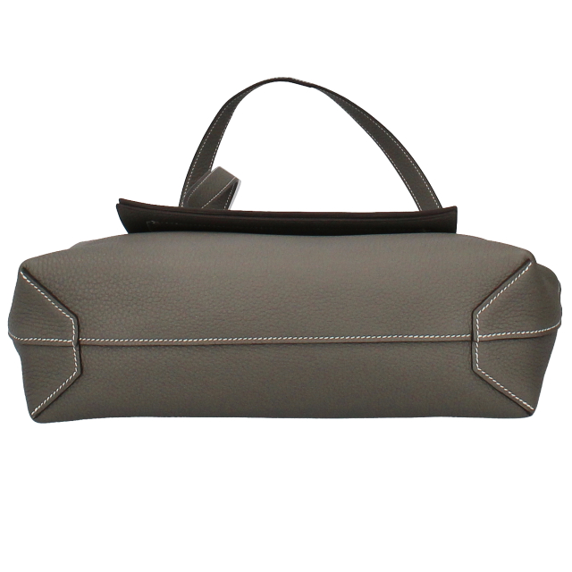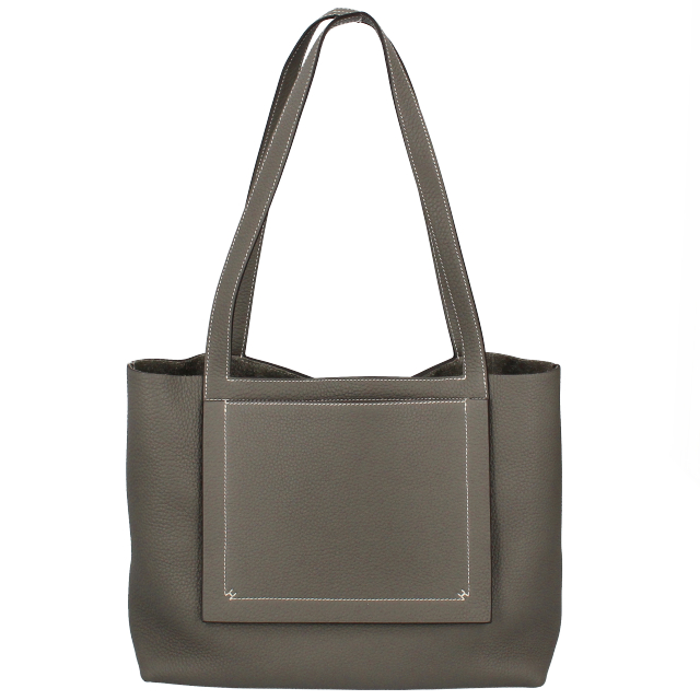 USED品。U刻印(2022年製)。タブレットも入る大きさながら、しなやかな一枚革で仕立てられた、驚くほどやわらかく軽やかなトートバッグです。フロントは便利なフラップポケットになっていて、愛らしい H のステッチがポイントです。