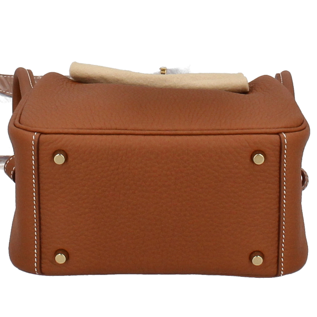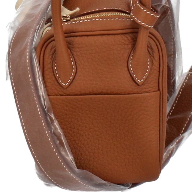 新品。B刻印(2023年製)。ゴールド金具。エルメスのアイコンバッグ「リンディ」のボクシーなフォルムを受け継ぐ「ミニリンディ」スタイリッシュなルックスが魅力的。たっぷりと余裕のあるストラップで、肩掛けはもちろん斜め掛けも出来ます。