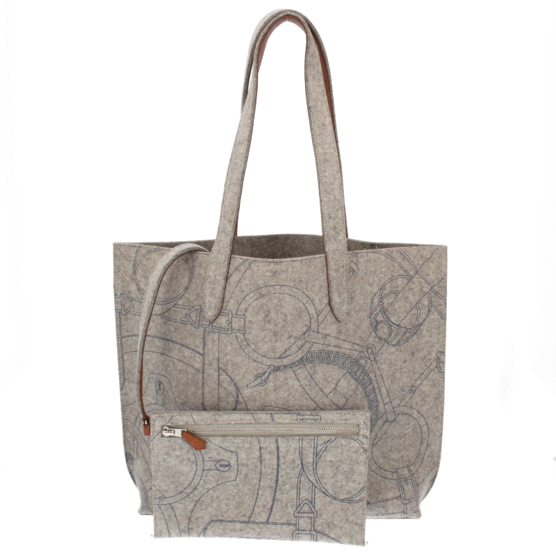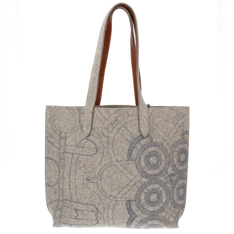 USED品。□L刻印(2008年製)。シルバー金具。収納力タップリで普段使いに最適なエルメスのトートバッグ「カリミMM」。フェルト生地にレザーをあわせた カジュアルながら上品な雰囲気のバッグです。