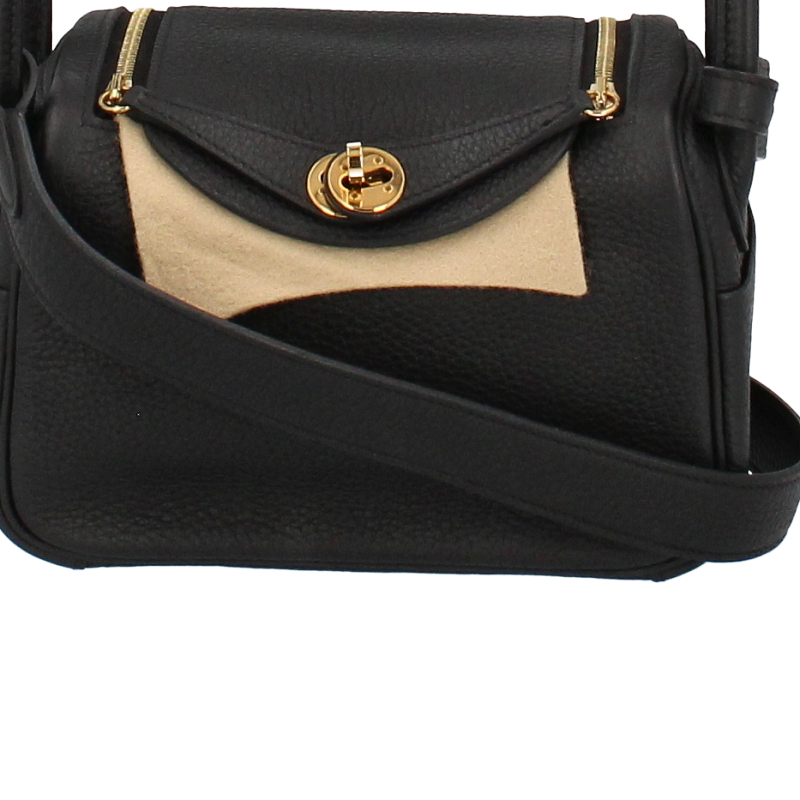 USED品。Z刻印(2021年製)。ゴールド金具。エルメスのアイコンバッグ「リンディ」のボクシーなフォルムを受け継ぐ「ミニリンディ」スタイリッシュなルックスが魅力的。たっぷりと余裕のあるストラップで、肩掛けはもちろん斜め掛けも出来ます。