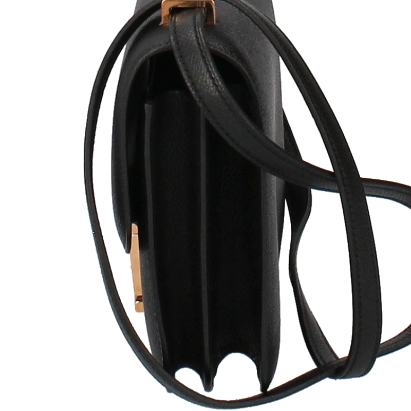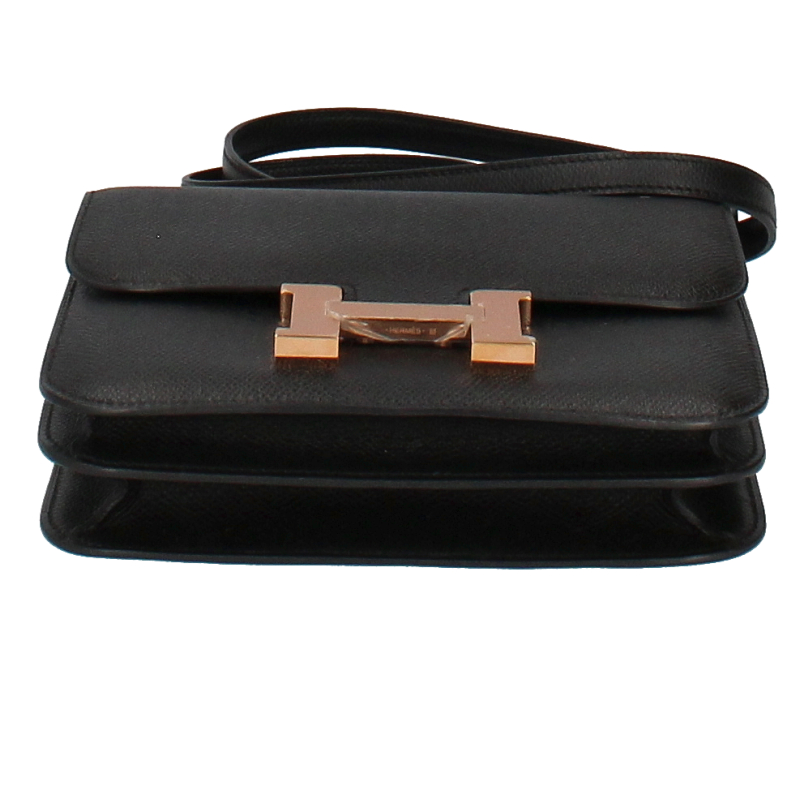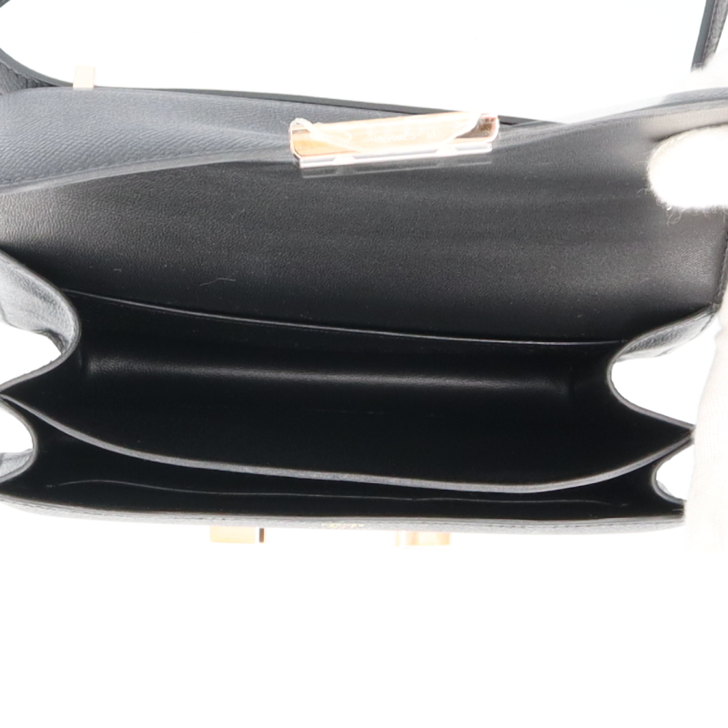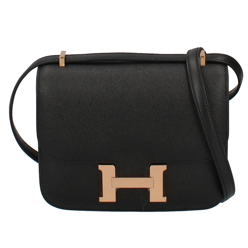 新品。ピンクゴールド金具。B刻印(2023年製)。フロントのHのバックルが印象的なコンスタンスミニサイズ。こちらは新型となっており、オープンポケットが2つから3つへ増加、従来品には無かったミラーが付属しております。