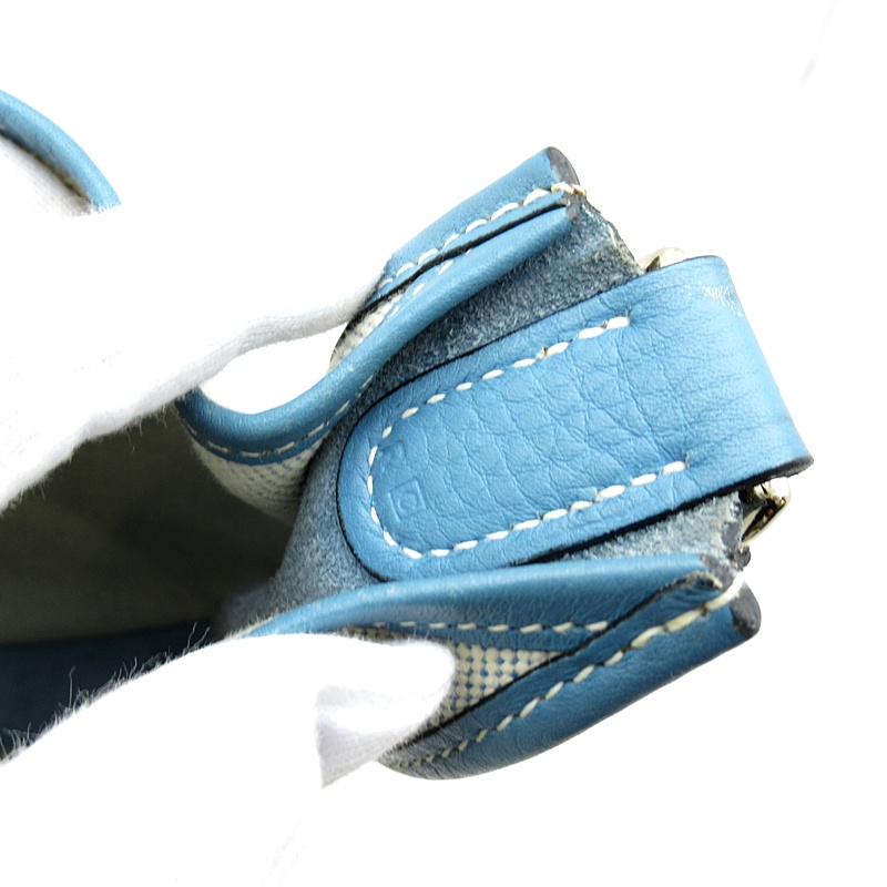 多少使用感有。□C刻印(1999年製)。表面に数カ所シミがあります。内部に若干のペン跡、シミがあります。ストラップに若干のシミ、色褪せがあります。