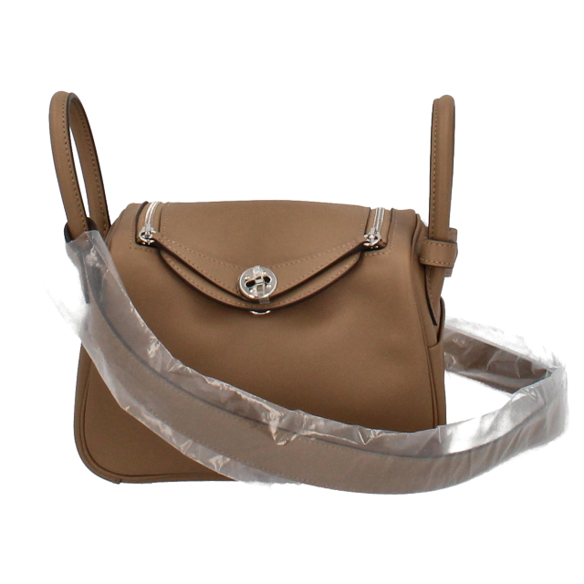 新品。U刻印(2022年製)。シルバー金具。エルメスのアイコンバッグ「リンディ」のボクシーなフォルムを受け継ぐ「ミニリンディ」スタイリッシュなルックスが魅力的。たっぷりと余裕のあるストラップで、肩掛けはもちろん斜め掛けも出来ます。