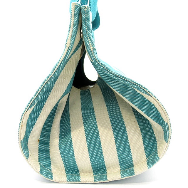 USED品。丸みを帯びた個性的なフォルムが可愛く、サイドボタンを外すと大きく開きますので、荷物の出し入れが便利です。マチが広く収納力もあります。大きすぎず丁度いいサイズ感で持ち運びもしやすくオススメです。