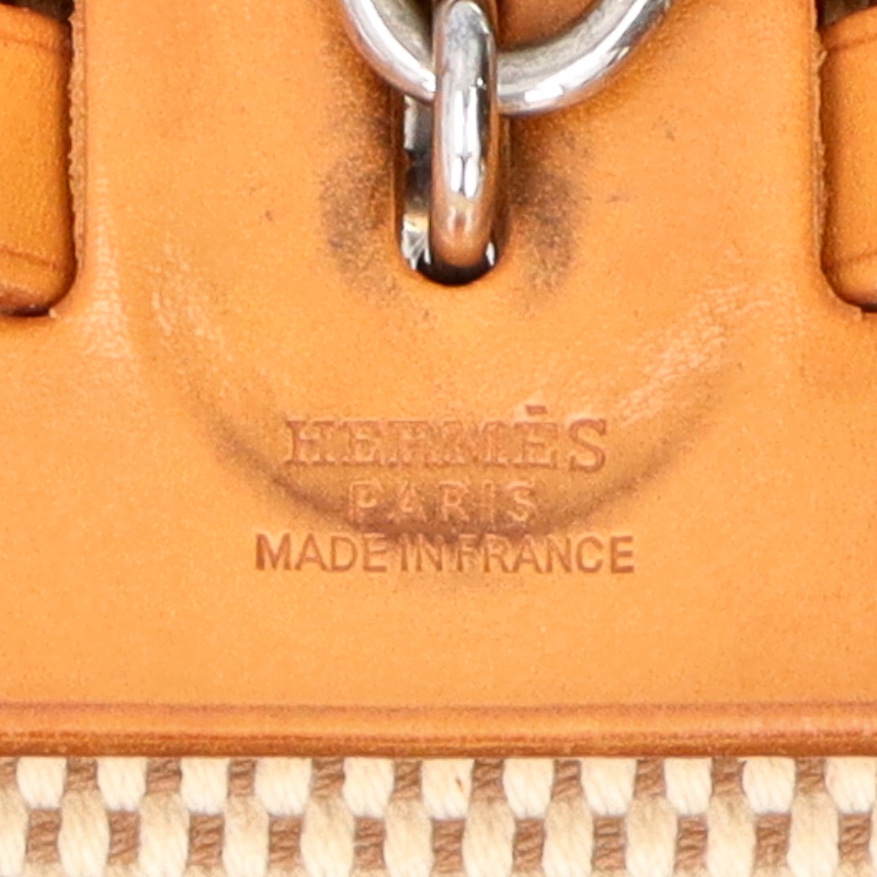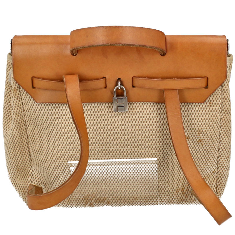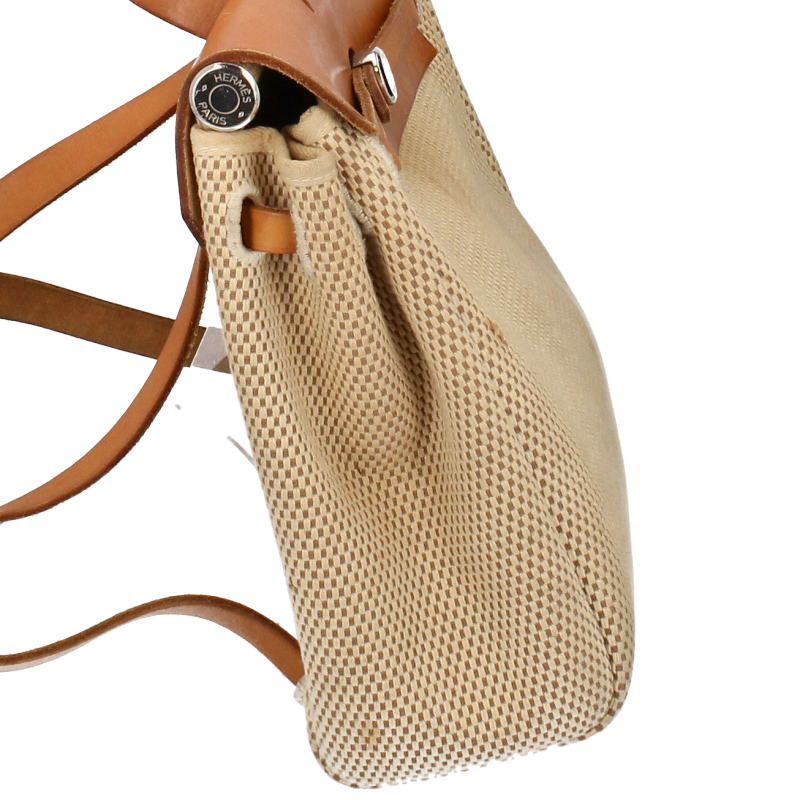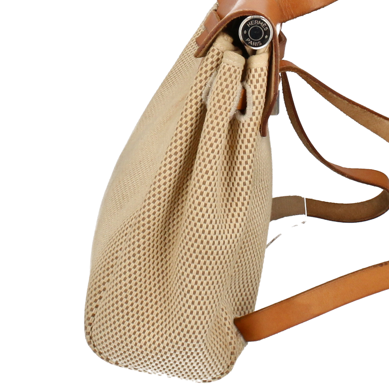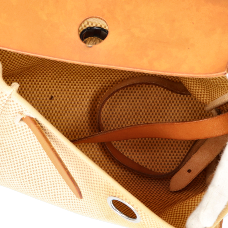多少使用感有。キャンバス全体に変色とシミがあります。レザー全体に色焼けと黒ずみがあります。金具に傷があります。