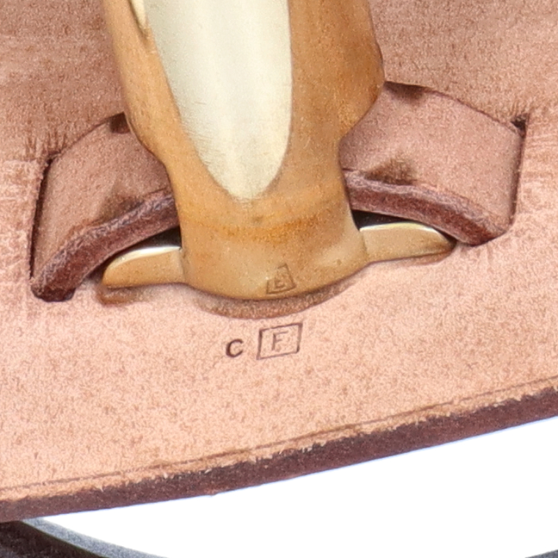 多少使用感有。□F刻印(2002年製)。レザーに擦り傷があります。角スレや黒ずみがあります。※替バッグ、鍵、クロシェット欠品