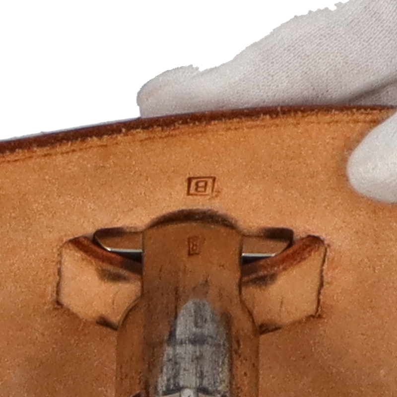 多少使用感有。□B刻印(1998年製)。表面、内部に汚れ、変色があります。レザー部分に擦り傷、シミがあります。