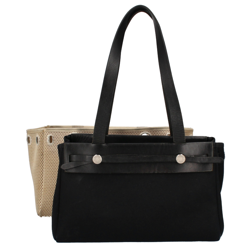 多少使用感有。□H刻印(2004年製)。表面キャンバスに擦れ、汚れがあります。レザーに擦り傷があります。替えバッグに変色、黒ずみがあり、間口に擦れや破れがあります。