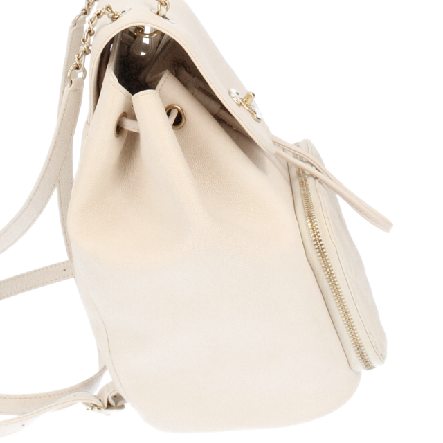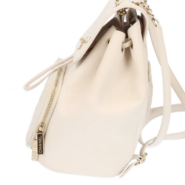 USED品。マトラッセが上品で高級感漂うチェーンバックパック。カジュアルになりすぎずファッショナブルな印象を与えるバッグです。